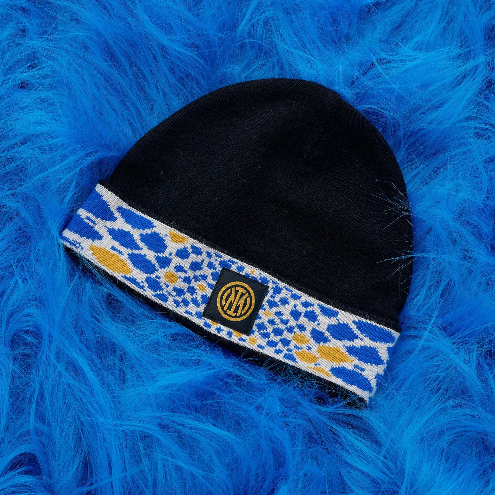 Il berretto INTER è un accessorio indispensabile da indossare insieme alla felpa multi logo. Realizzato con i colori del club, è personalizzato con il logo INTER al centro.
