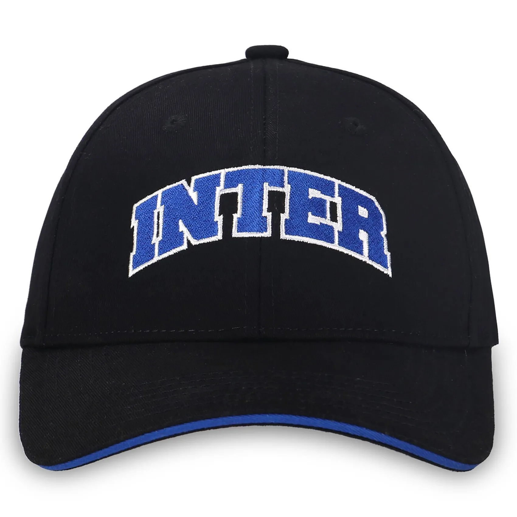 Il cappellino da baseball INTER è un accessorio dal design contemporaneo e di tendenza. E’ personalizzato con ricamo scritta INTER e presenta chiusura a fibbia metallica con logo. Il bordo blu della visiera riprende il colore del ricamo.