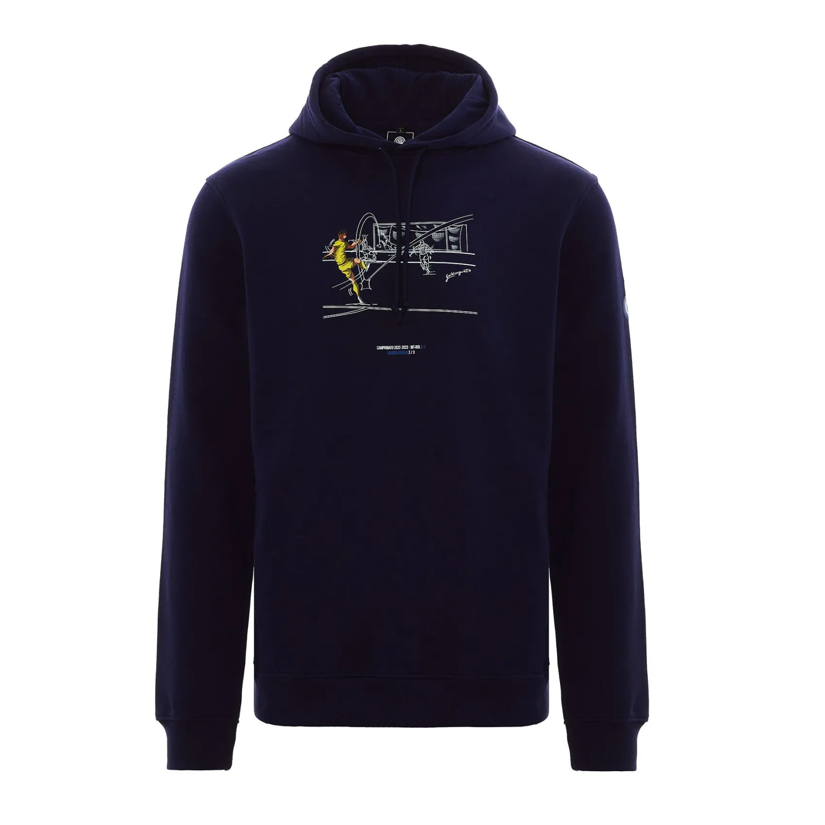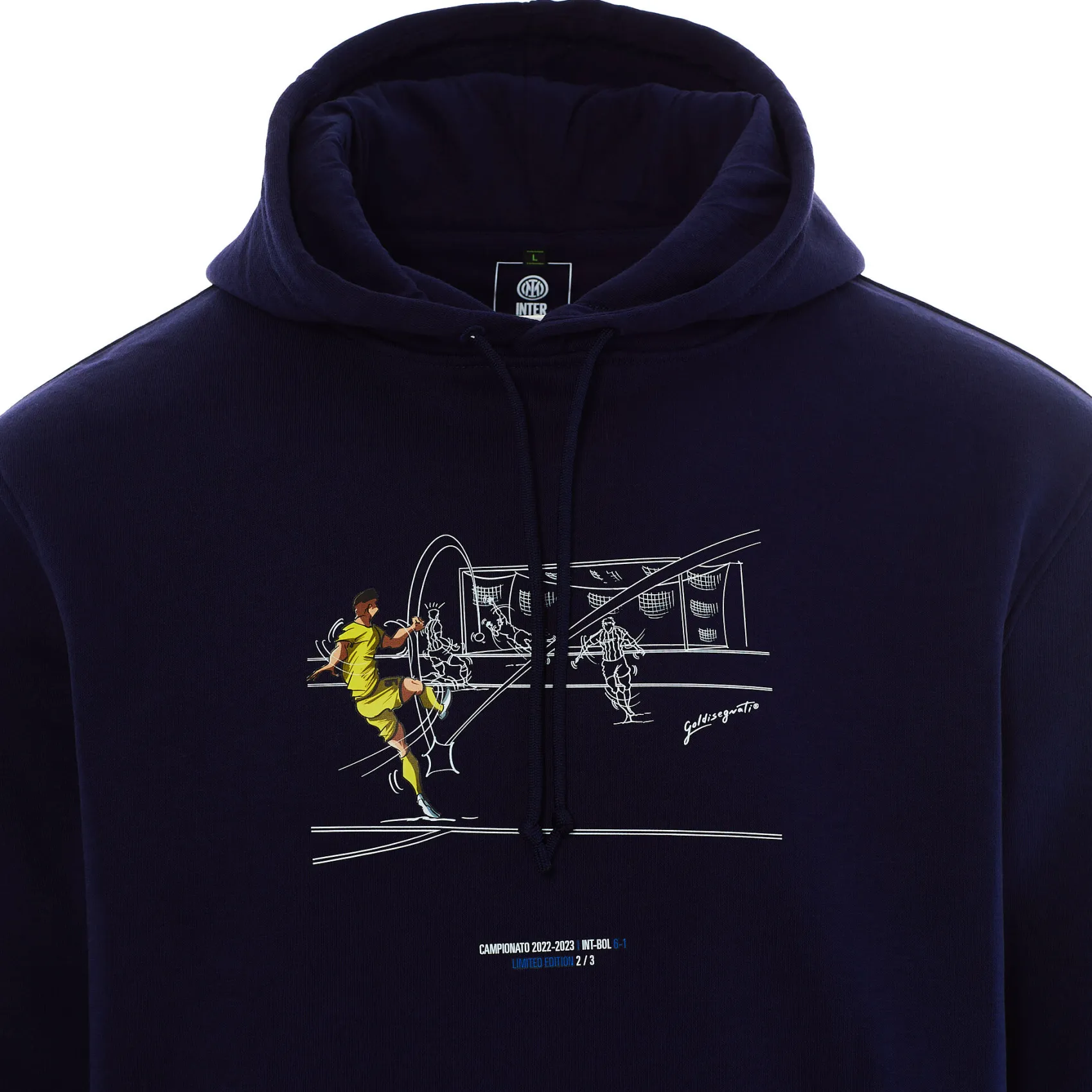 I goal più belli della prima metà di campionato 22-23 sempre con te. Indossa il goal di Dzeko nella partita INTER-Bologna sulla felpa con cappuccio e tasche laterali. Realizzata in felpa garzata di cotone organico e poliestere riciclato, è il capo ideale per il tuo tempo libero.Morbido cordino al cappuccio per regolazione, costina 1×1 al fondo e ai polsi.