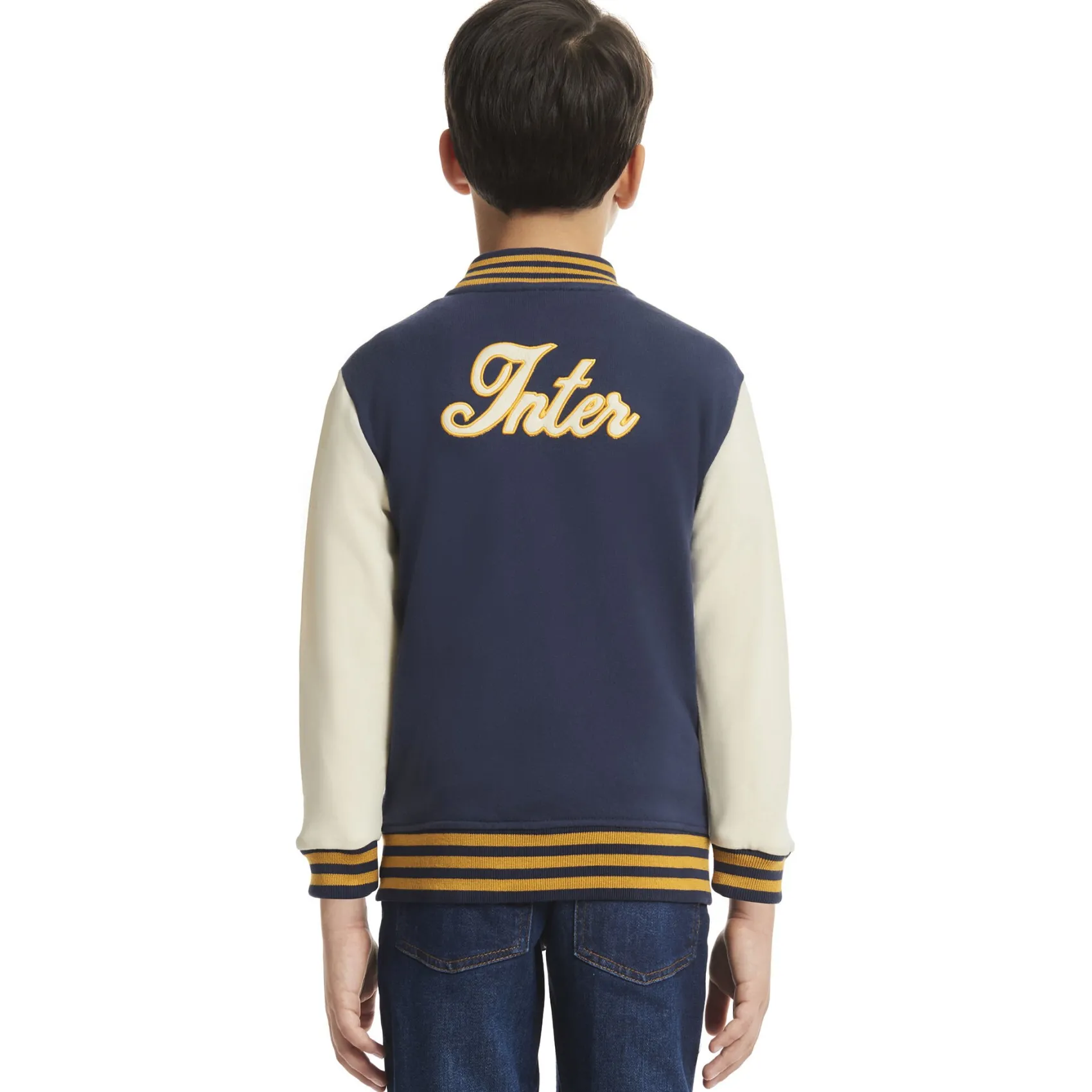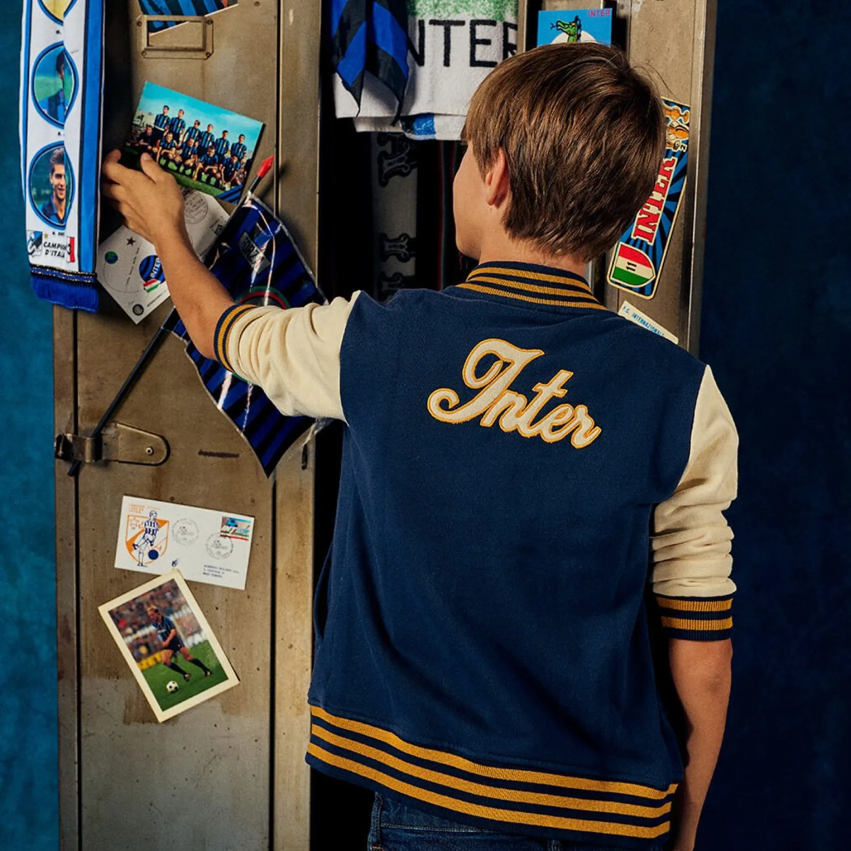 La felpa varsity College presenta sul cuore una nuova interpretazione del logo IM in feltro e ricamata e la scritta INTER in stile College sul retro. Chiusura con bottoni in metallo personalizzati.