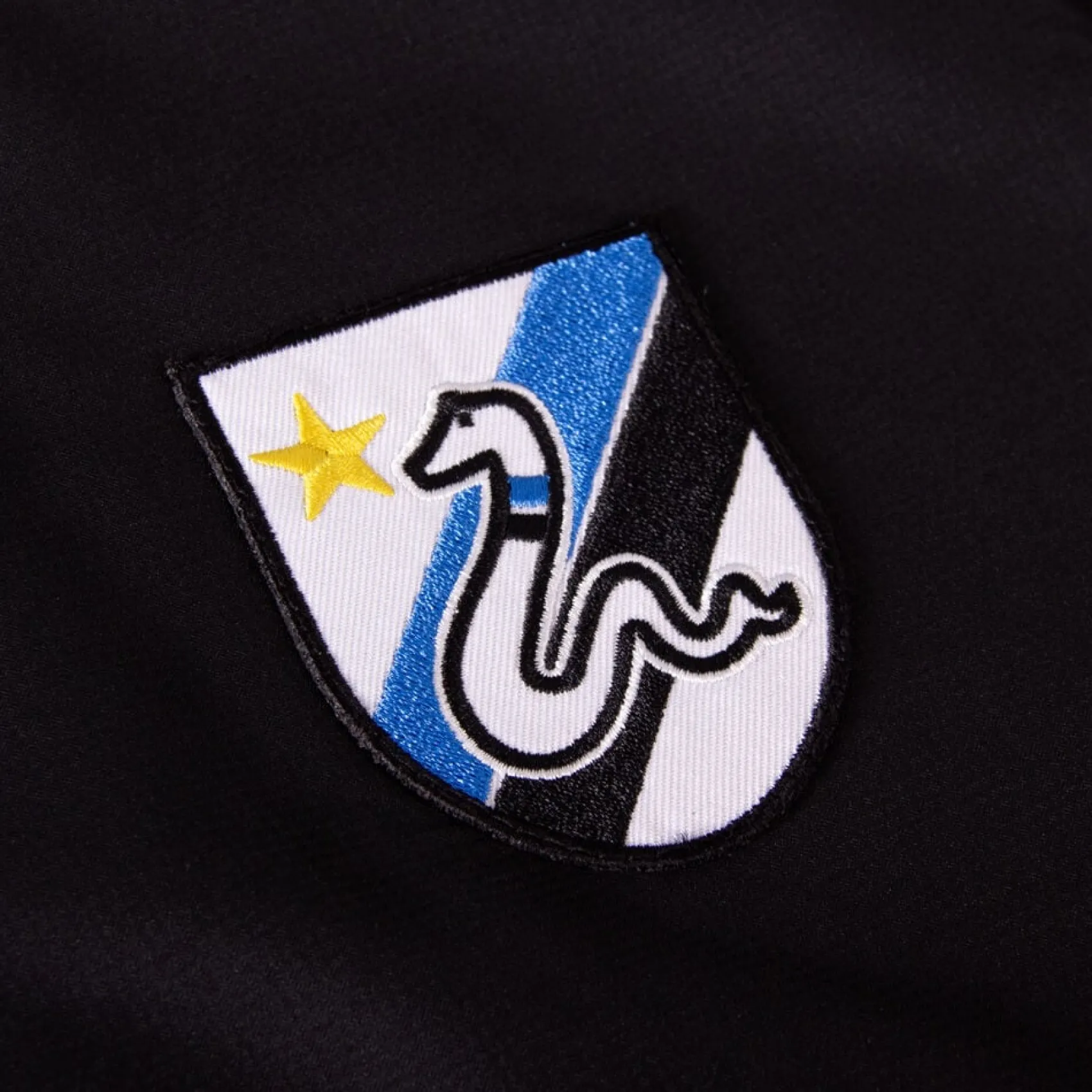 La giacca a vento Retro Taper è dotata di una fodera interna ed è antivento e idrorepellente. Sulla parte superiore delle spalle e delle maniche è cucito un nastro intrecciato ad alta risoluzione che mostra lo stemma retrò del Biscione. Il capo è completato dal vecchio logo retrò del Club con il Biscione ricamato sul petto.
