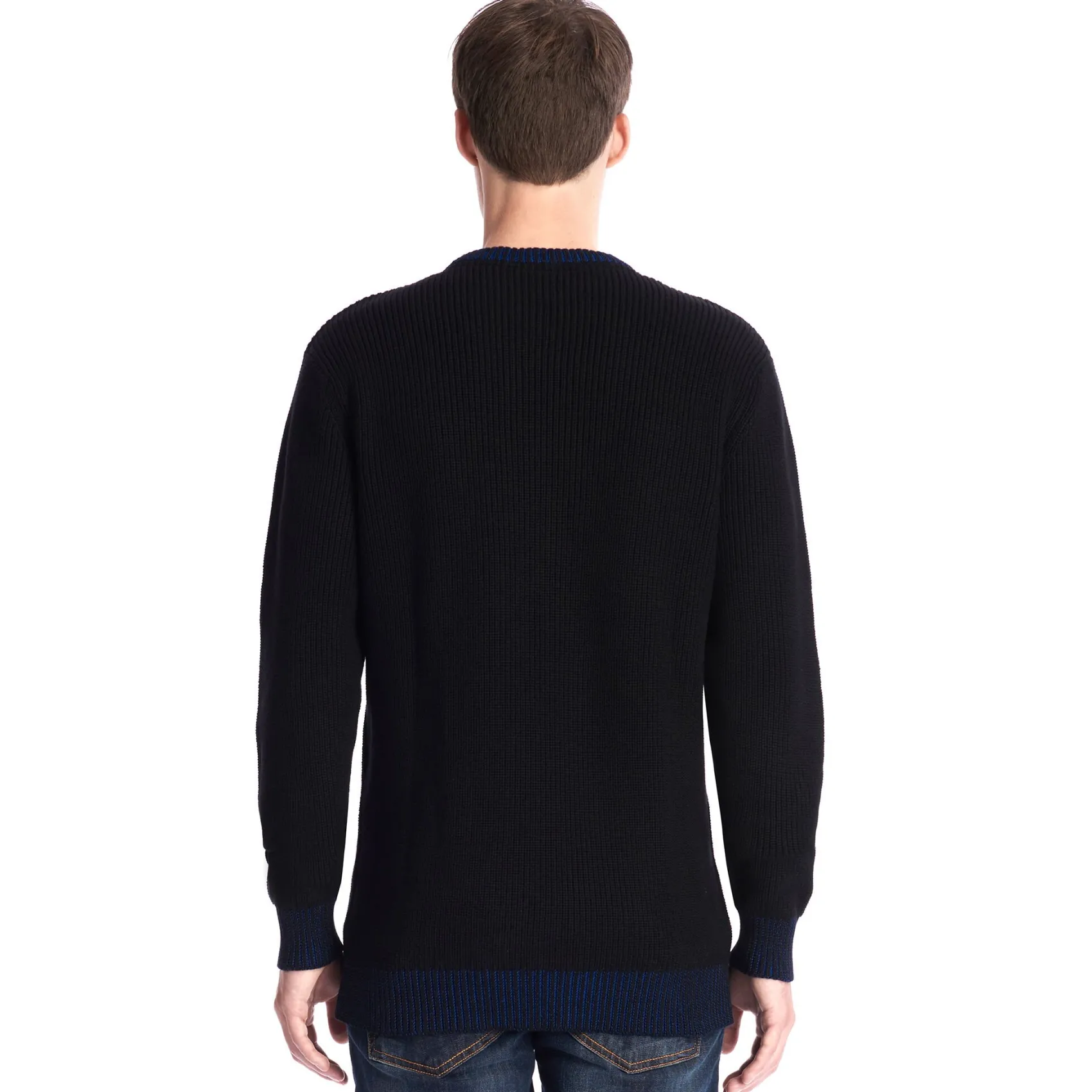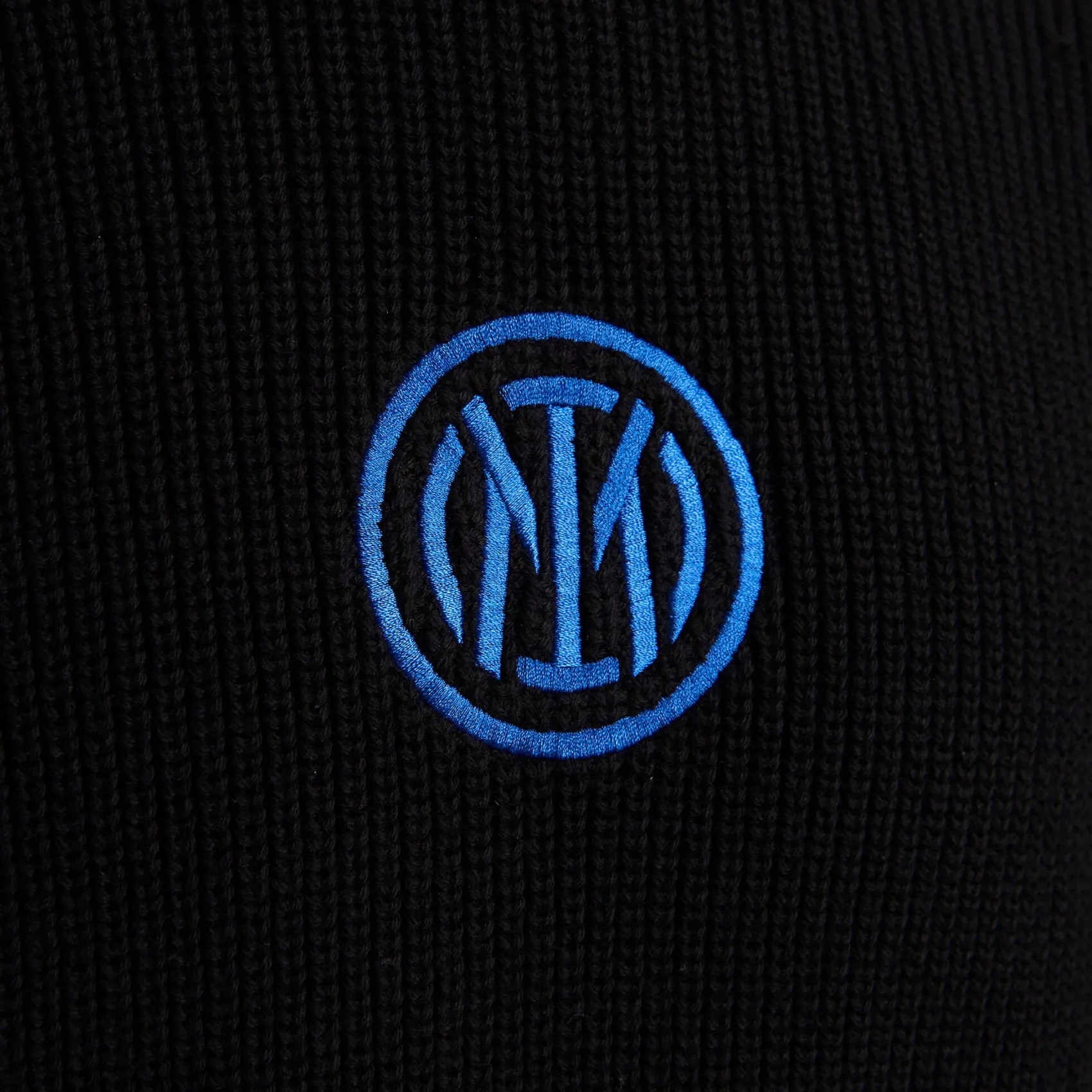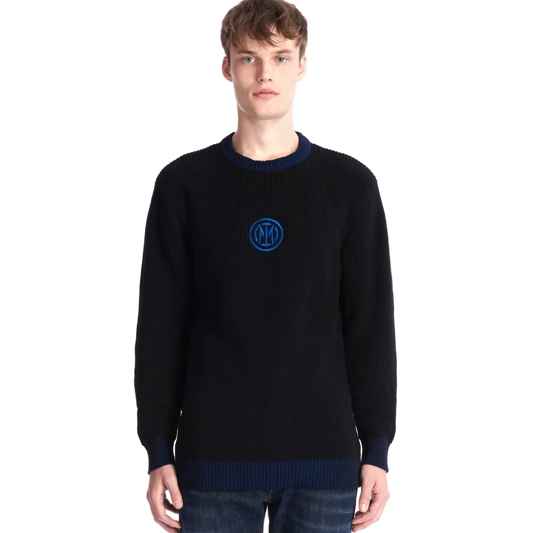 Il maglione INTER è realizzato in morbida costina 100% cotone. Girocollo dalla mano morbida, collo, polsi e fondo in costina nerazzurra. Personalizzato con logo del club ricamato al centro. Vestibilità regolare.