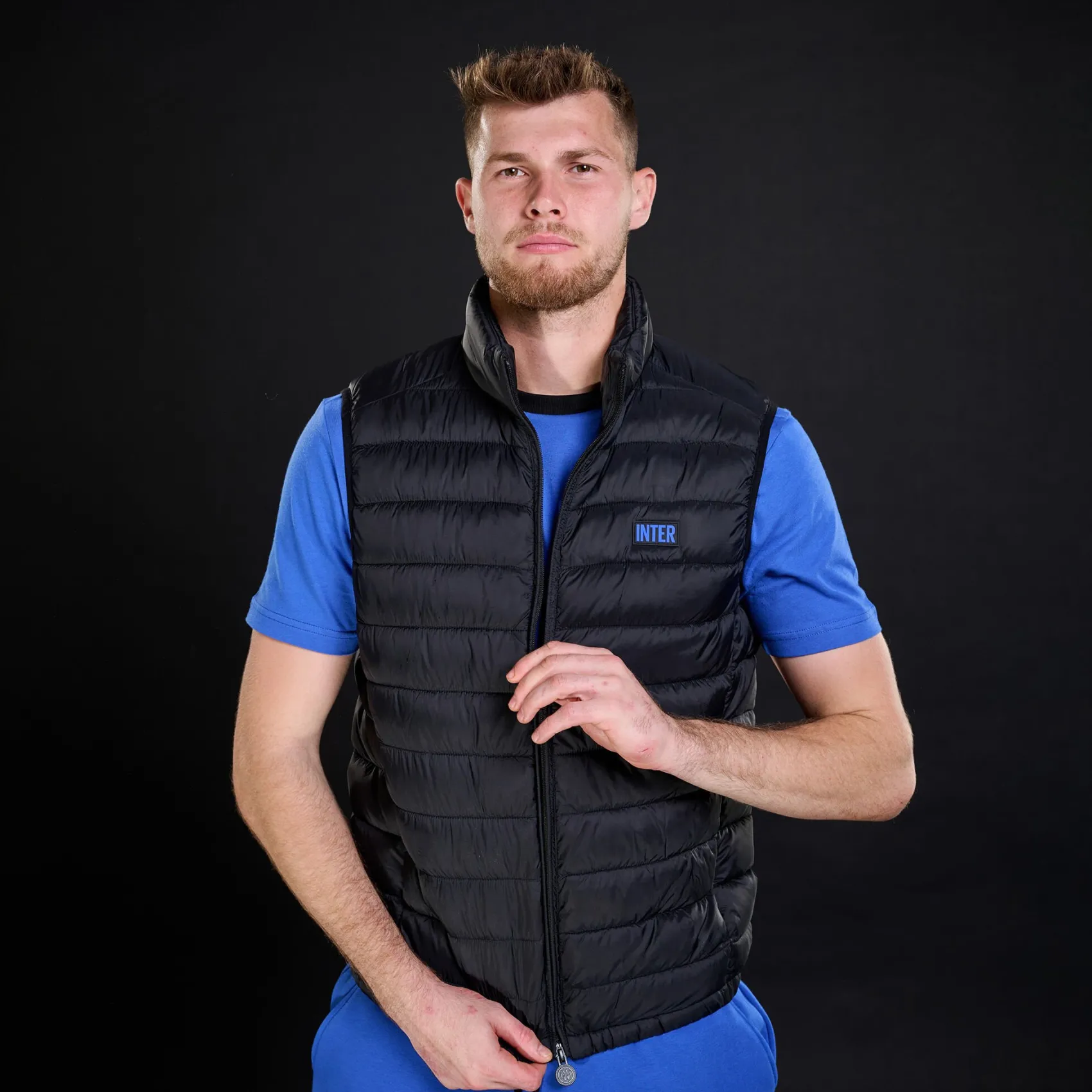 La giacca imbottita smanicata INTER è il capo ideale per affrontare l’arrivo del freddo. Ideale per le partite allo stadio nella stagione autunnale, è perfetto per essere indossato sopra una felpa. Vestibilità slim.