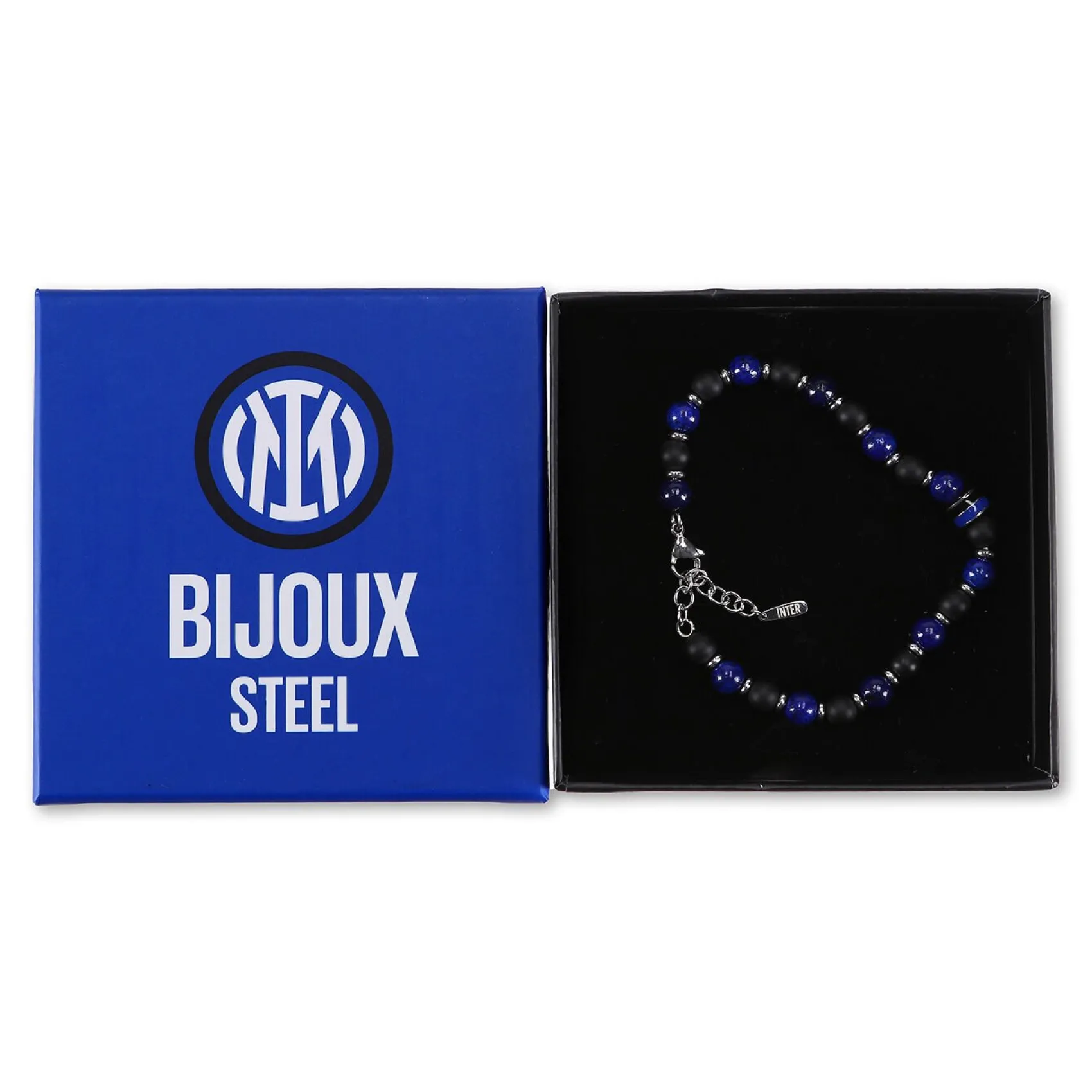 Il braccialetto INTER non può mancare al polso di un vero tifoso nerazzurro. È realizzato in acciaio 316L e pietre naturali a tinte nerazzurre.Il bracciale è corredato di box regalo. Misura regolabile.