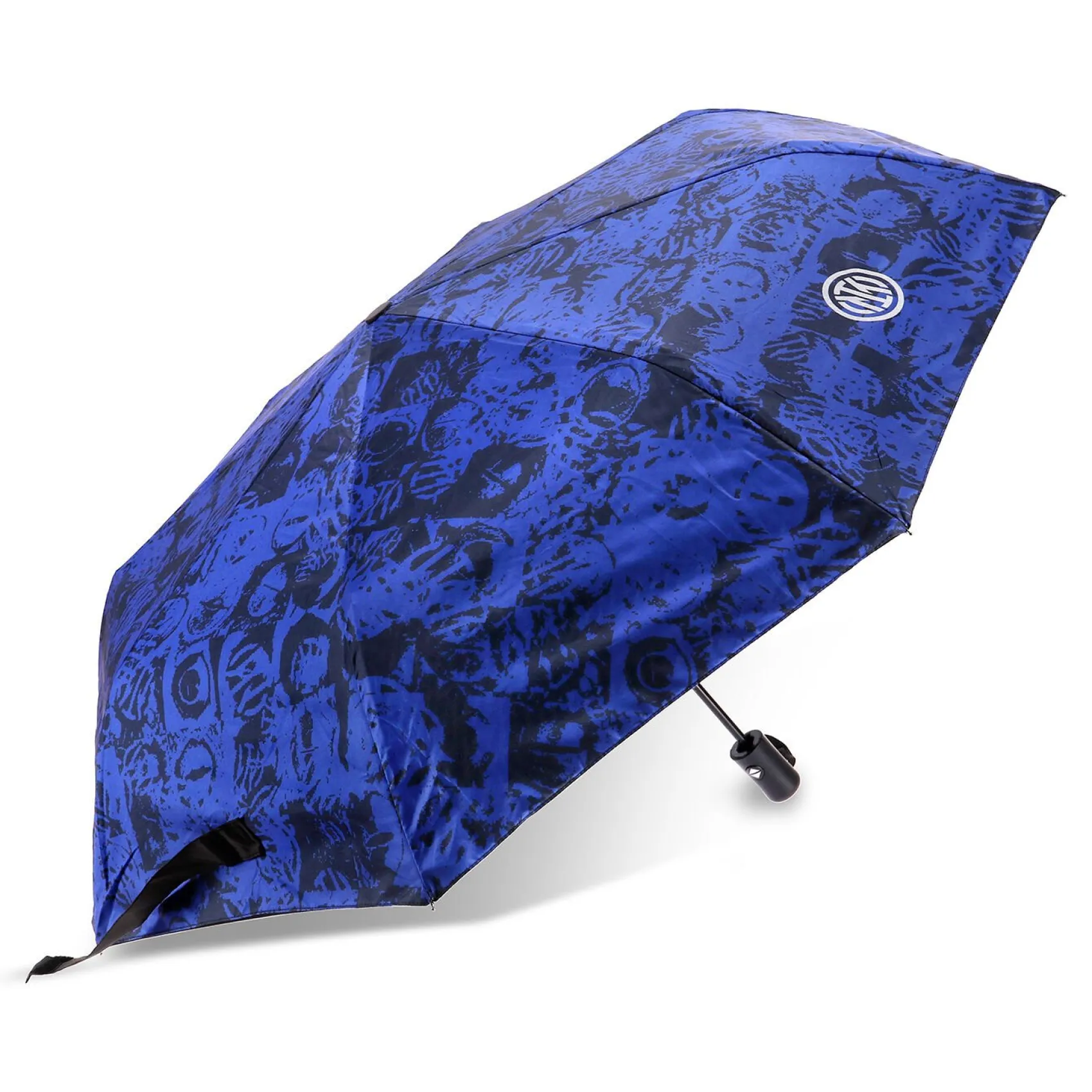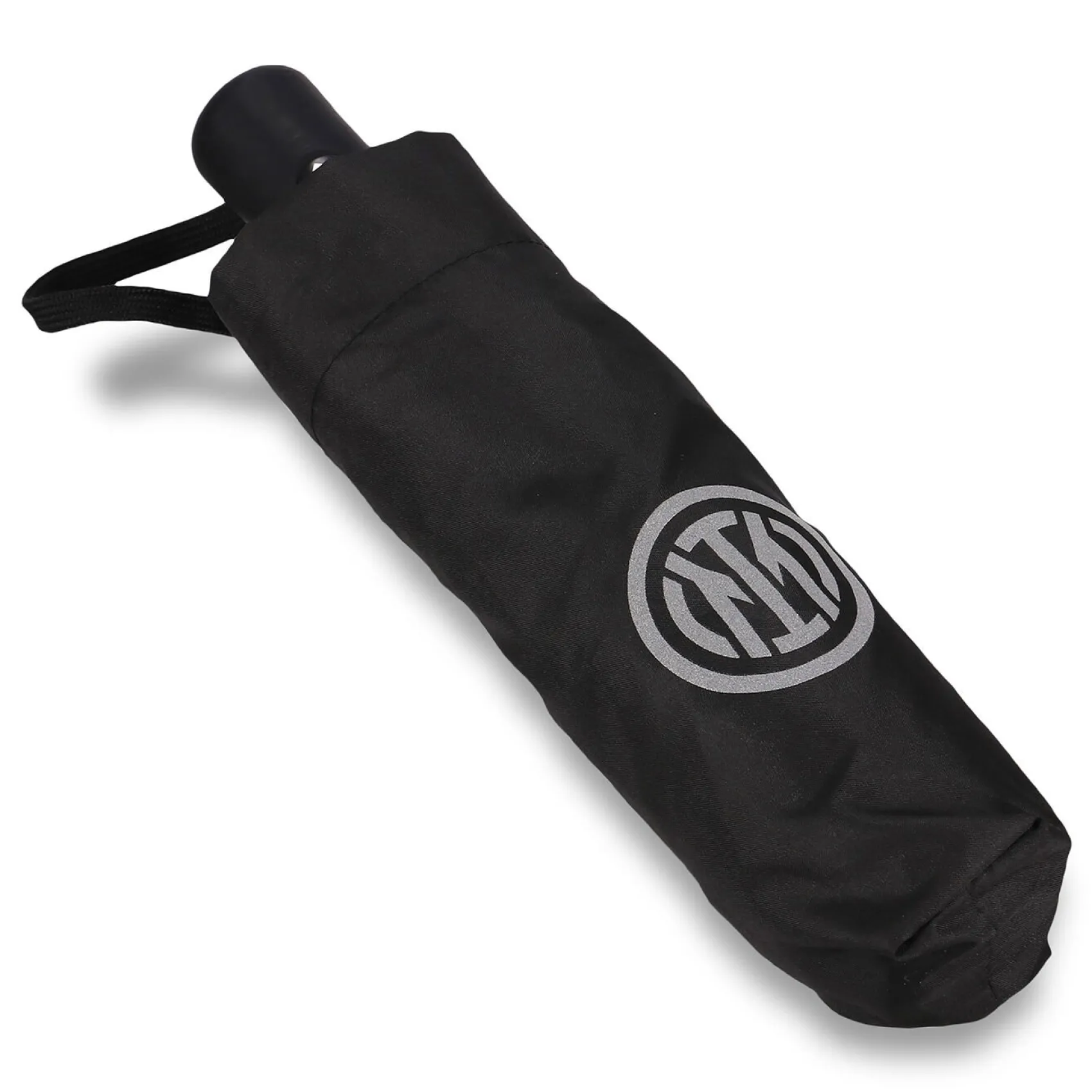 L’ombrello mini INTER è leggero e facile da portare sempre con te. Personalizzato con logo INTER argento su ombrello e custodia. Stampa all over esterna e interno nero.