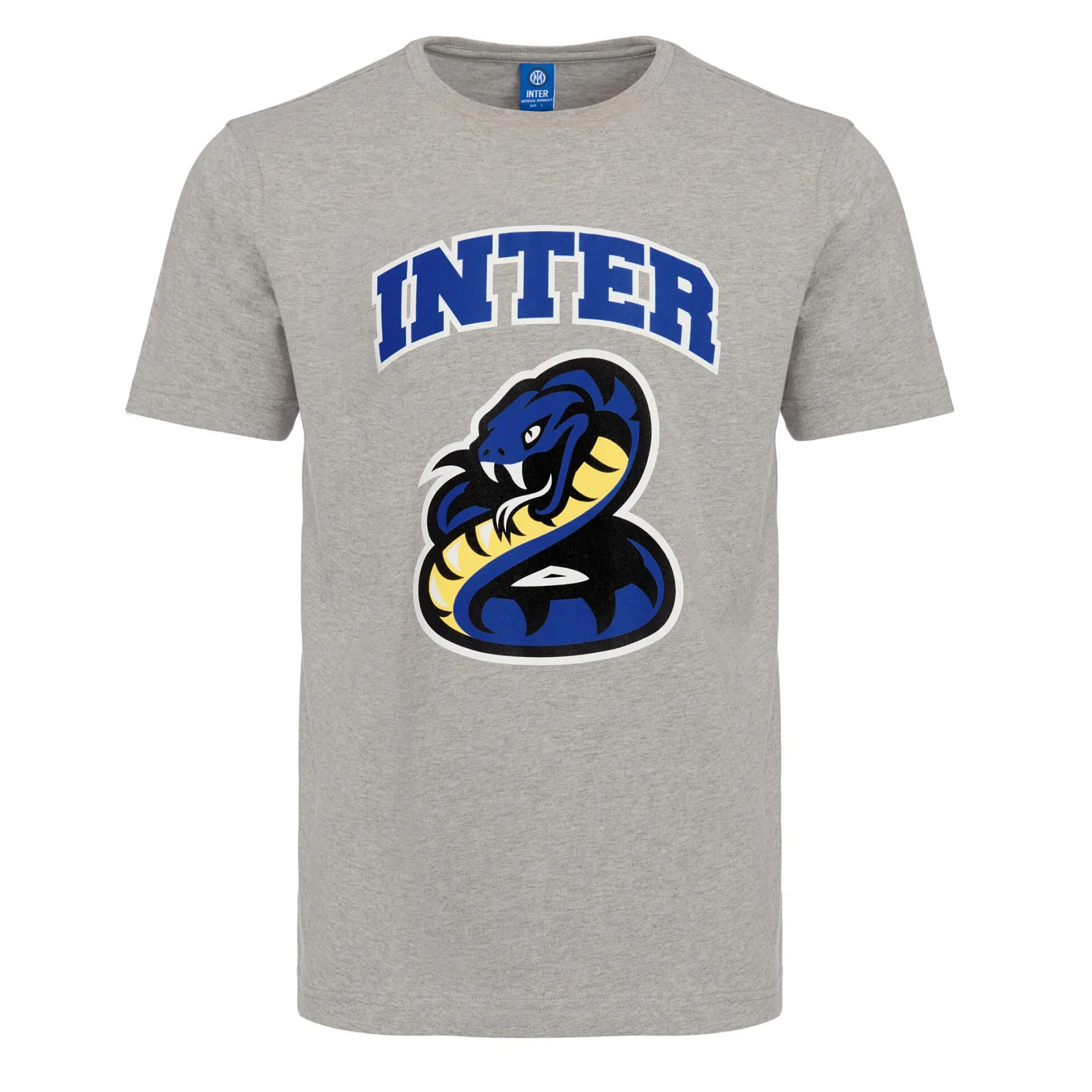 La t-shirt biscione INTER è realizzata in morbido jersey di cotone. Nella stampa centrale è raffigurato il biscione, simbolo del club, accompagnato dalla scritta INTER in colore blu.