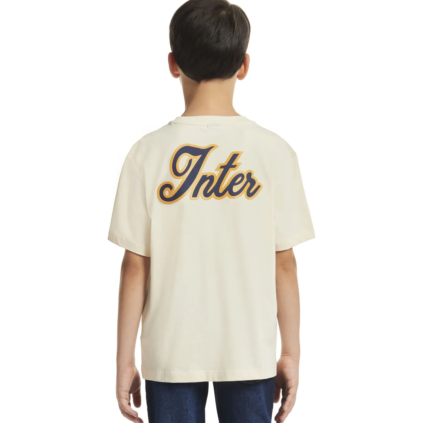 La t-shirt College è realizzata in morbido jersey di cotone. È presente una nuova interpretazione del logo IM e la scritta INTER in stile College.