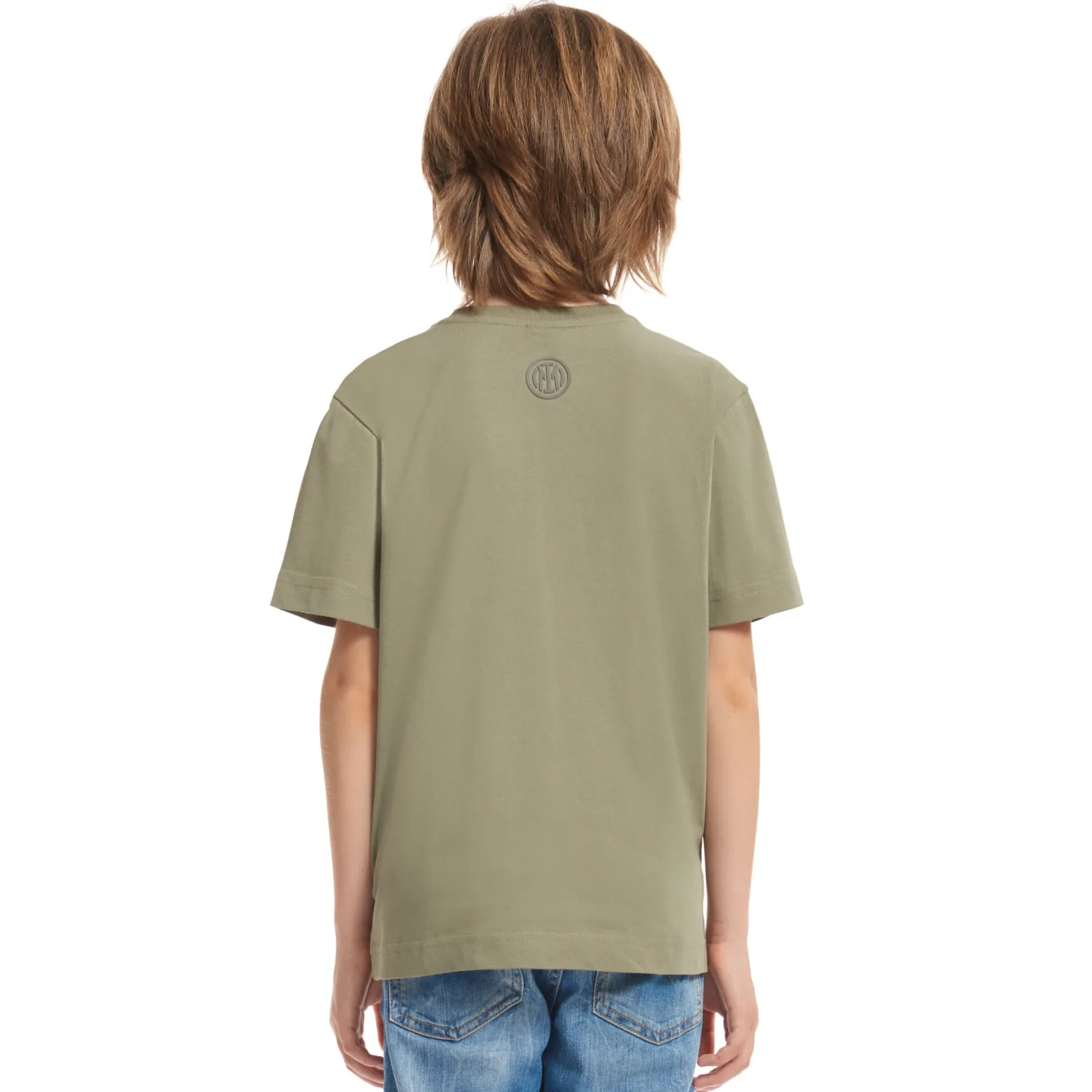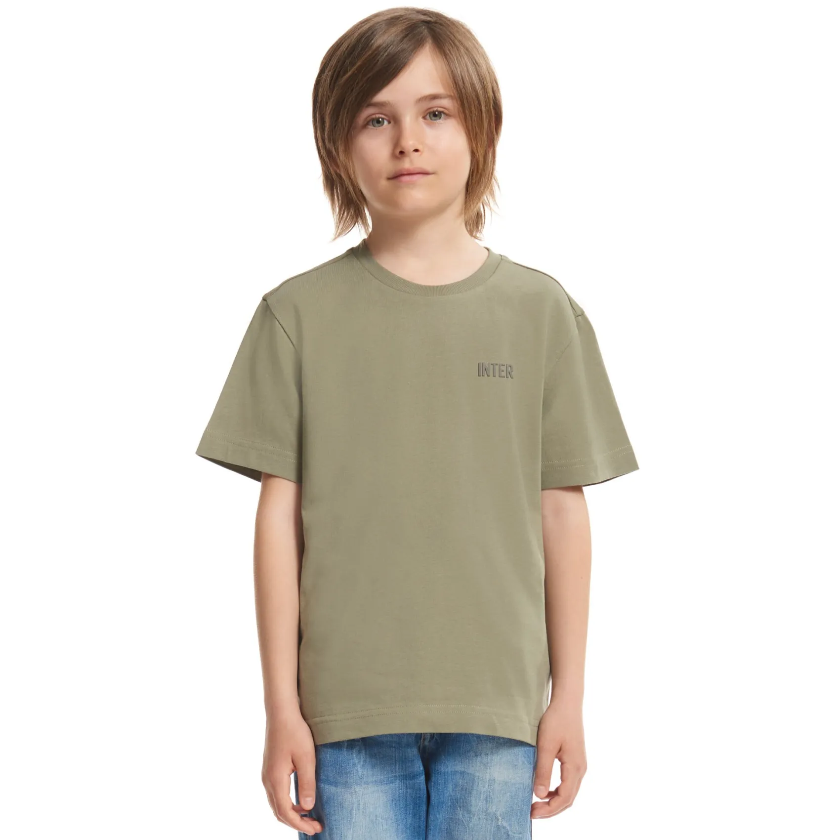 T-shirt INTER manica corta in cotone con collo in costina. Stampa gommata 3D con scritta INTER posizionata sul taschino. Logo INTER gommato 3D sul retro. Vestibilità regolare.