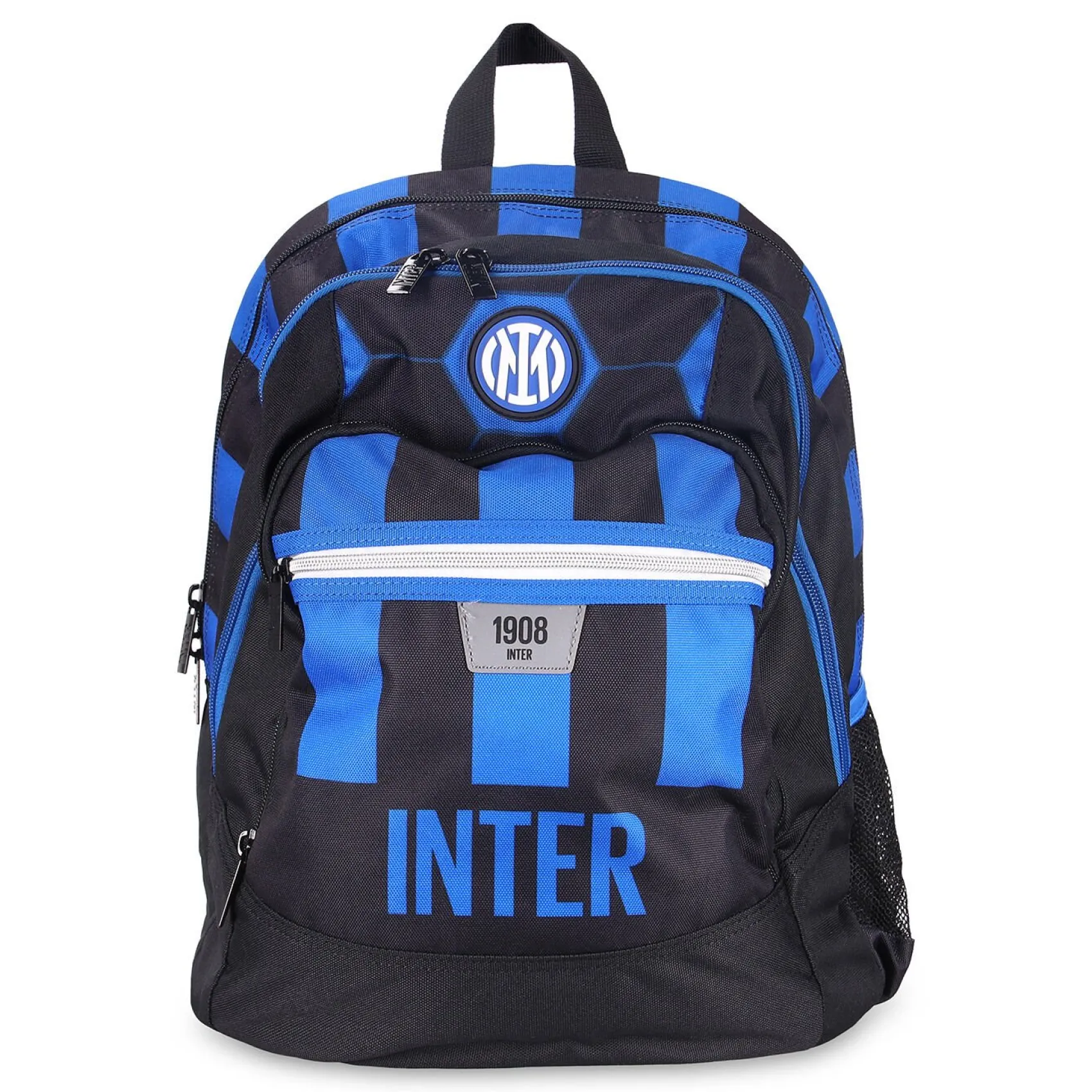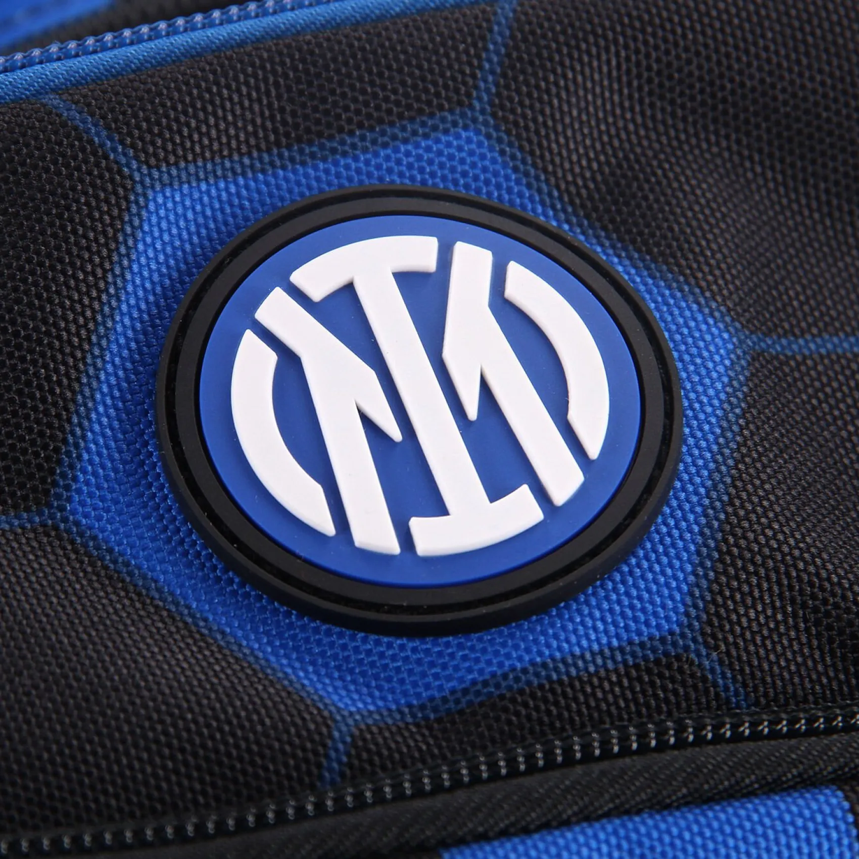 Lo zaino advanced INTER, realizzato da Seven®, presenta doppio scomparto, apertura con cerniera, tasca in rete laterale porta borraccia, tasca interna porta pc. Tirazip personalizzati. Bordature in tono su tasca. Grafiche stampate a transfer. Etichetta rifrangente con anno di fondazione del Club applicata con cucitura. Etichetta logo in gomma applicata con cucitura. Schienale imbottito e rivestito in tessuto. Spallacci imbottiti e rivestiti in tessuto con sottospallaccio in rete.
