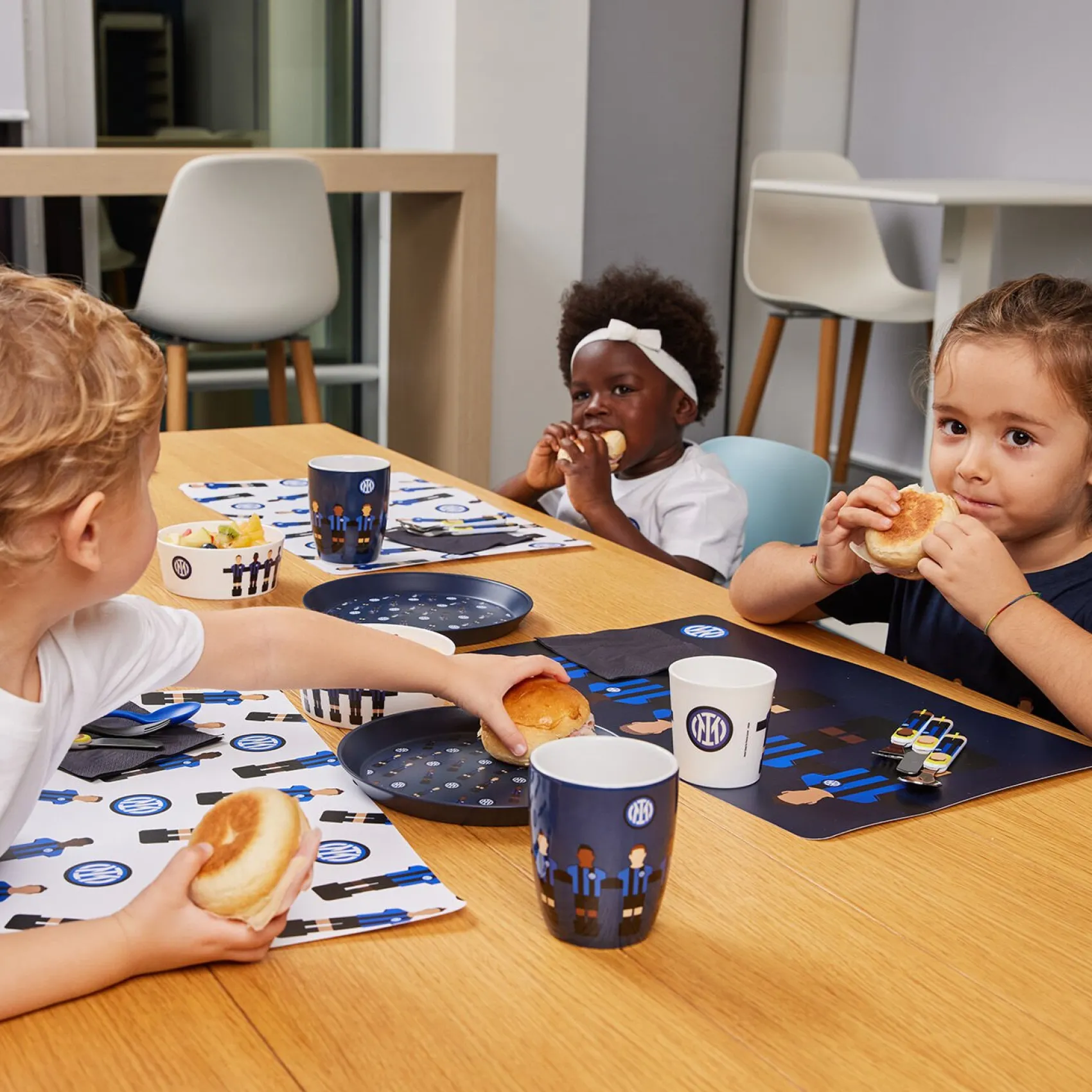il set tovagliette INTER è perfetto per accompagnare i piccoli tifosi nerazzurri fin dai loro primi pasti. Abbinato al resto della collezione, è composto da due tovagliette con la grafica Calcio Balilla.
