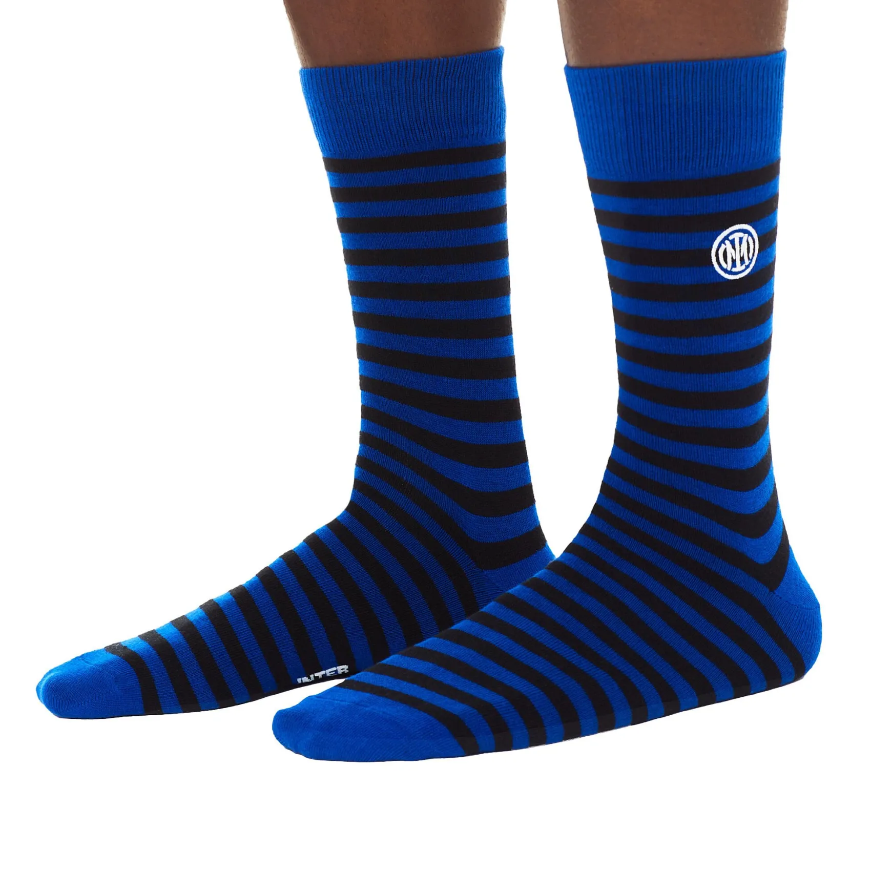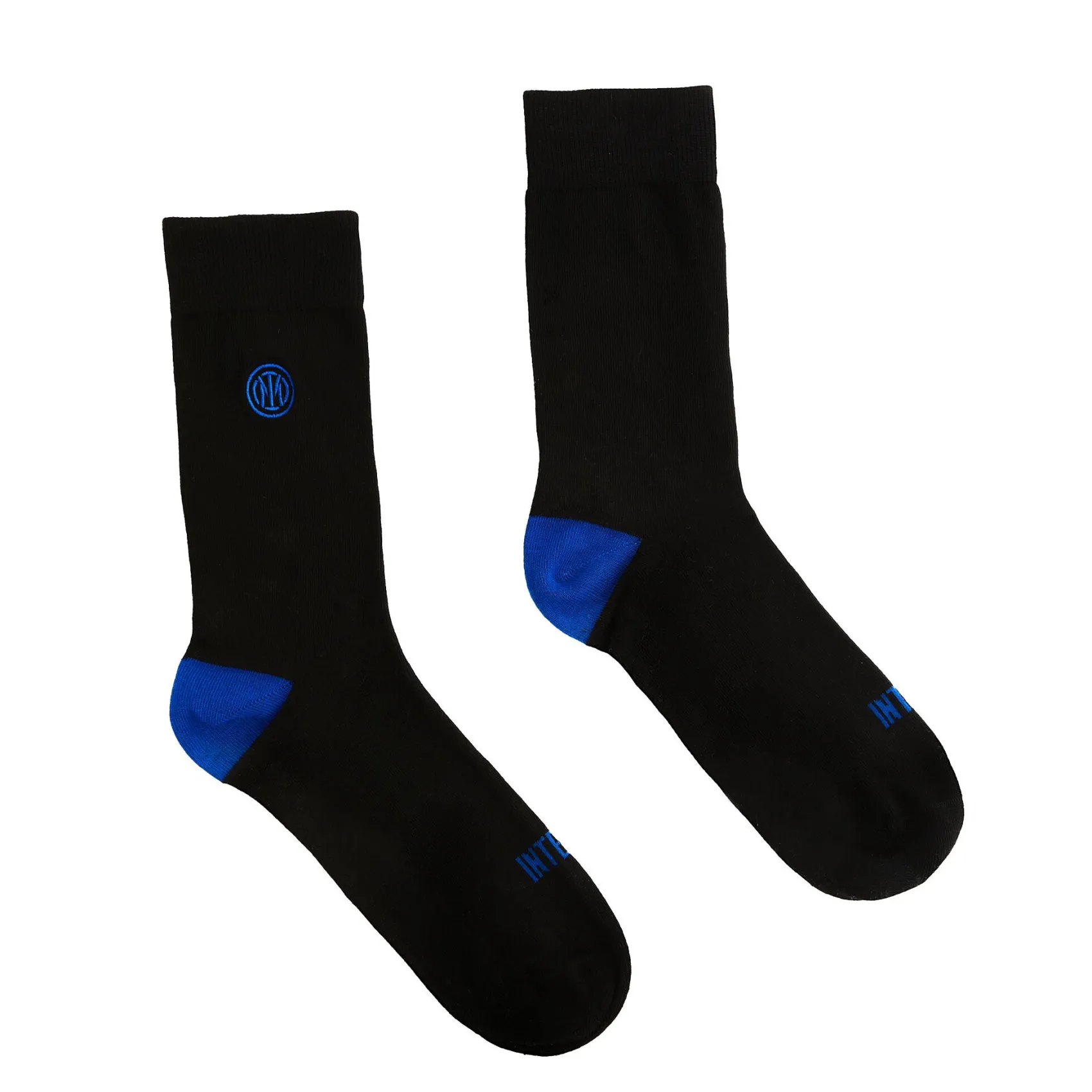 Il set di due calze INTER non può mancare nel guardaroba di un vero tifoso nerazzurro. Le due calze, una nera e una blu, sono impreziosite dal logo ricamato a contrasto.