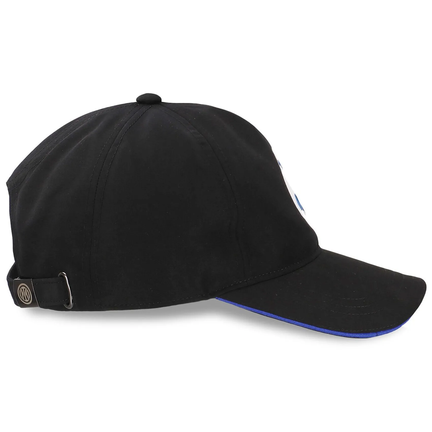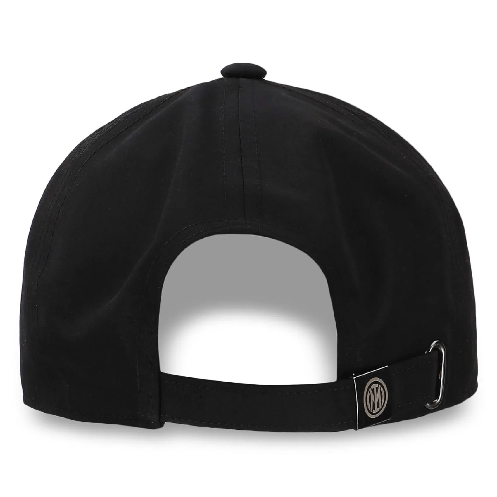 Il cappellino INTER è personalizzato con logo world crest reflective al centro e dettaglio blu sulla visiera. Chiusura posteriore con fibbia regolabile per un fit personalizzato.