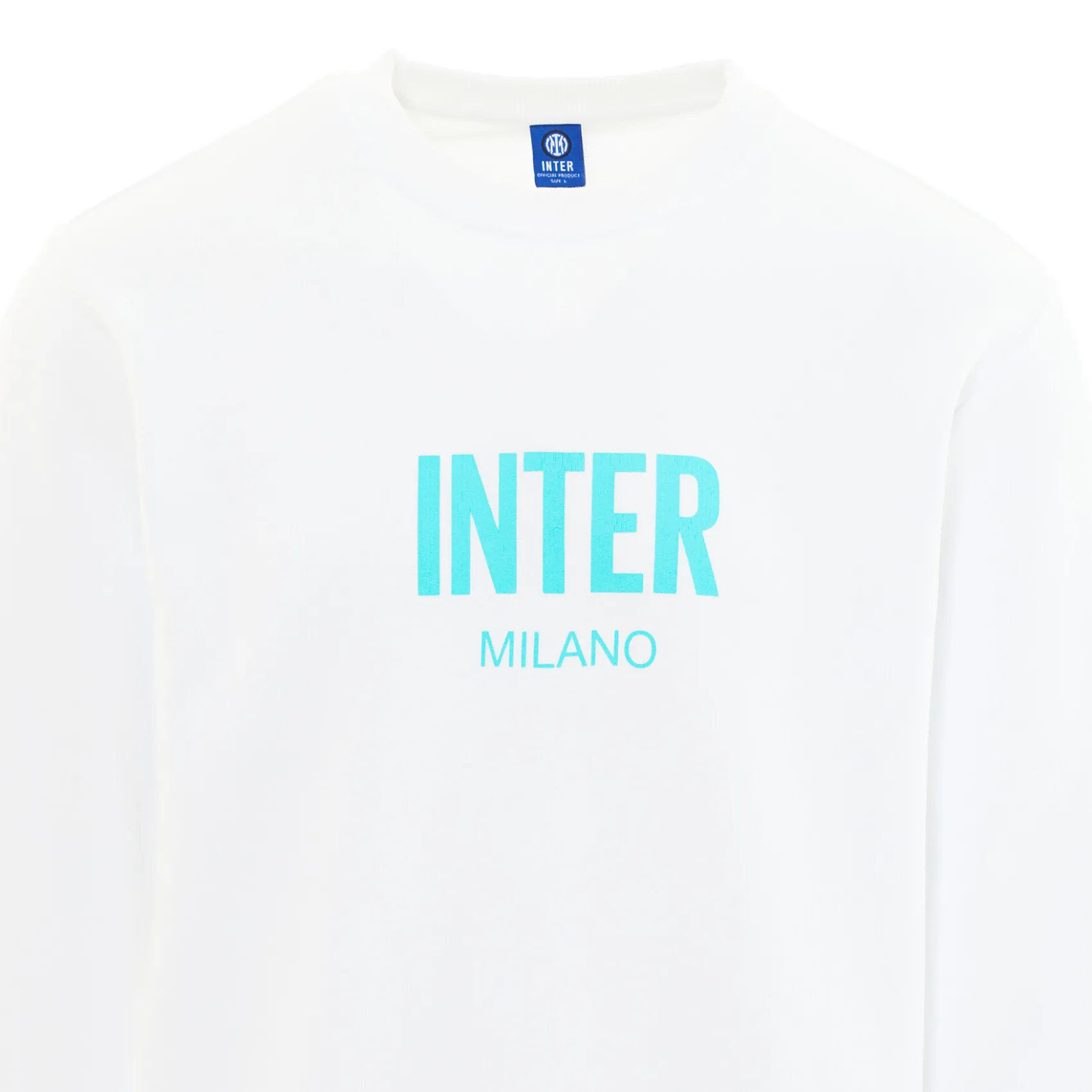 La felpa INTER, in morbida felpa di cotone, è caratterizzata da una stampa sul retro che esalta il crest in dimensione 3D. Sul davanti scritta INTER Milano in tono con il colore della grafica dietro. Polsini e fondo in costina 2×2 elastica, vestibilità regolare.