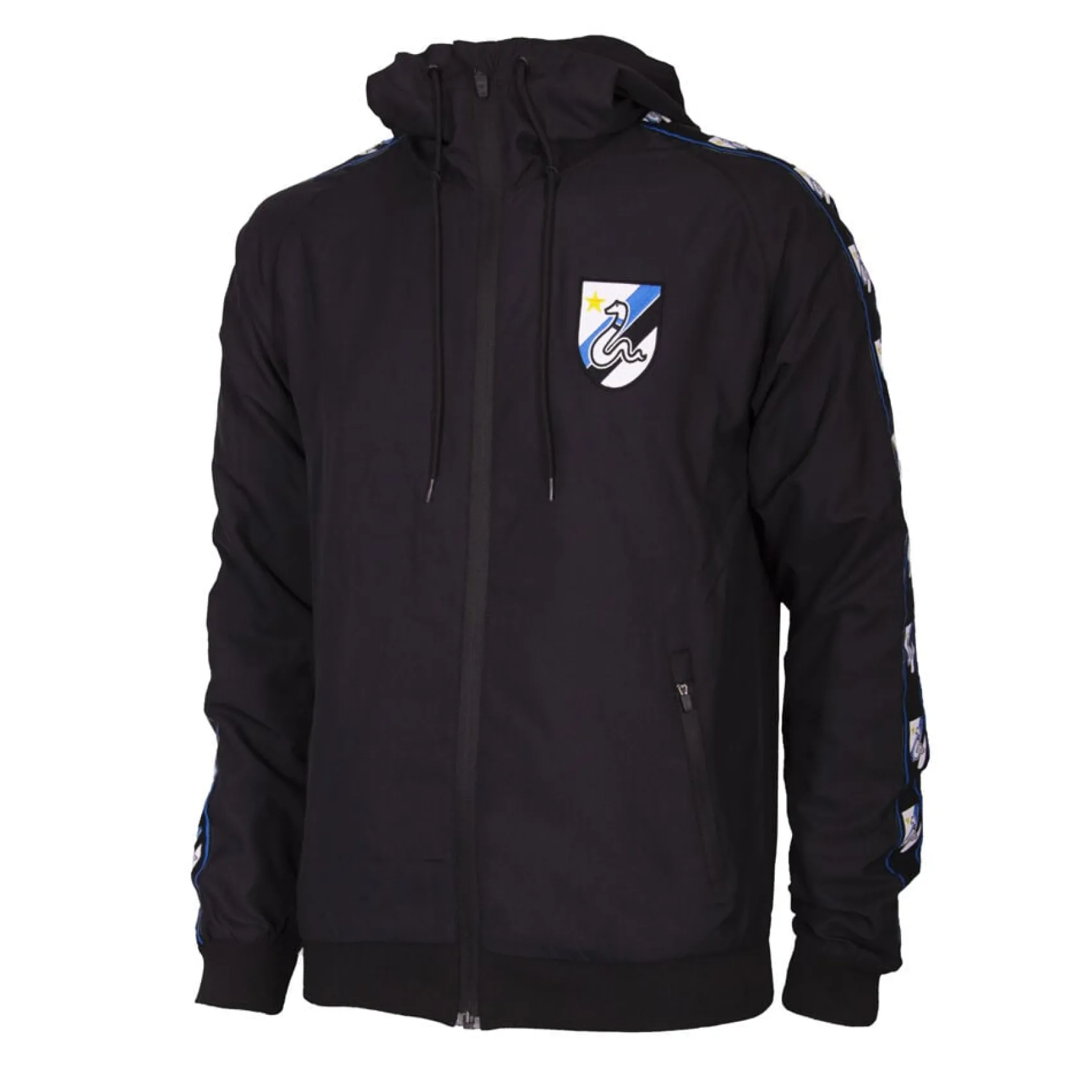 La giacca a vento Retro Taper è dotata di una fodera interna ed è antivento e idrorepellente. Sulla parte superiore delle spalle e delle maniche è cucito un nastro intrecciato ad alta risoluzione che mostra lo stemma retrò del Biscione. Il capo è completato dal vecchio logo retrò del Club con il Biscione ricamato sul petto.