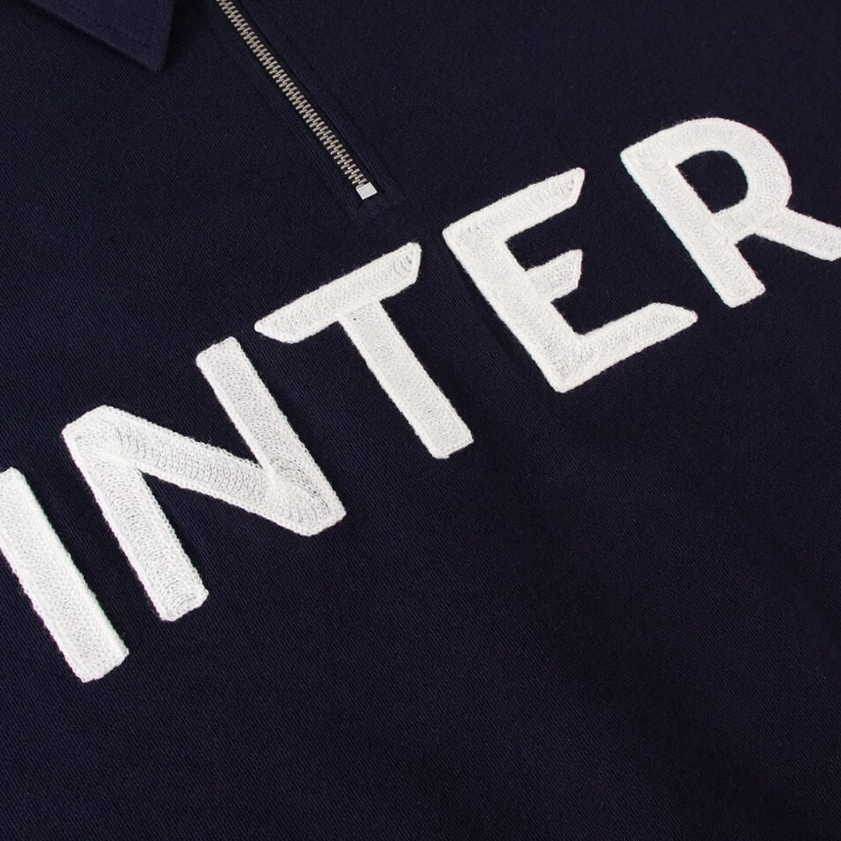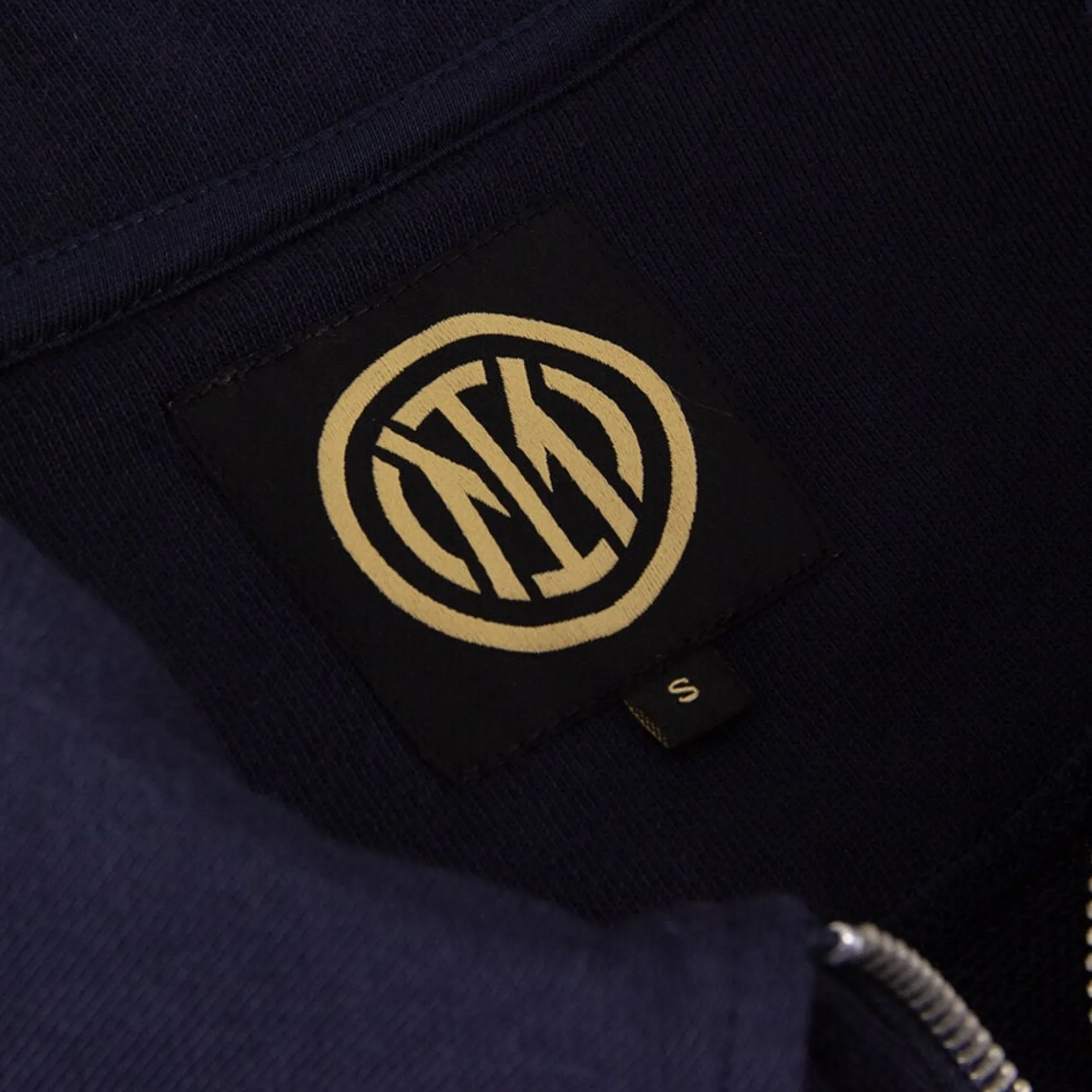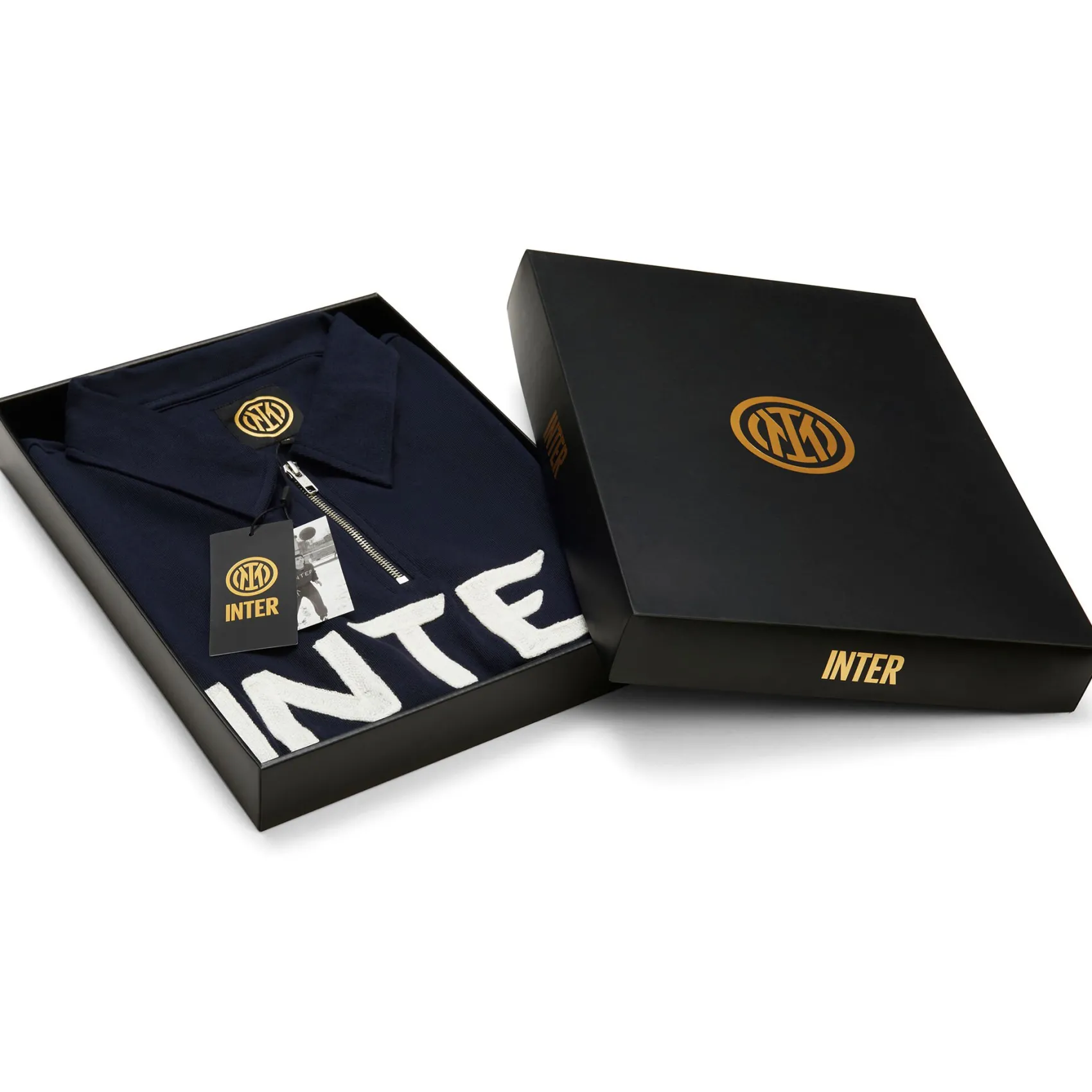 Il maglione retro del 1949 è realizzato in 100% cotone. Presenta un colletto a polo e zip a un quarto. La scritta INTER è realizzata con una particolare tecnica di ricamo vecchio stile.