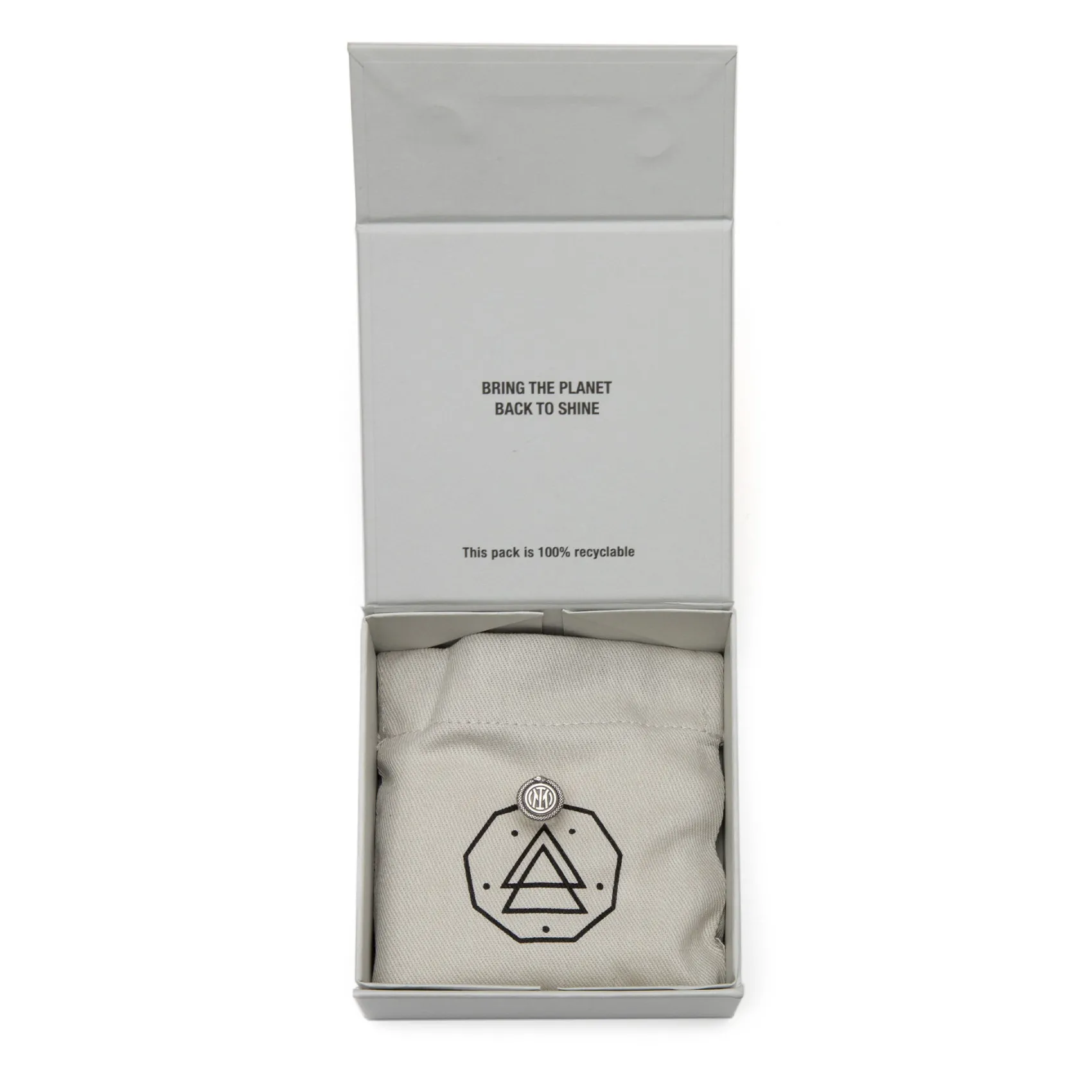La collezione INTER X NOVE25 celebra l’unione del Club nerazzurro con l’azienda milanese nota per la realizzazione di gioielli in argento. L’orecchino singolo è un esempio di design e cura dei dettagli, presenta il logo dell’INTER circondato dal biscione, simbolo storico della squadra.