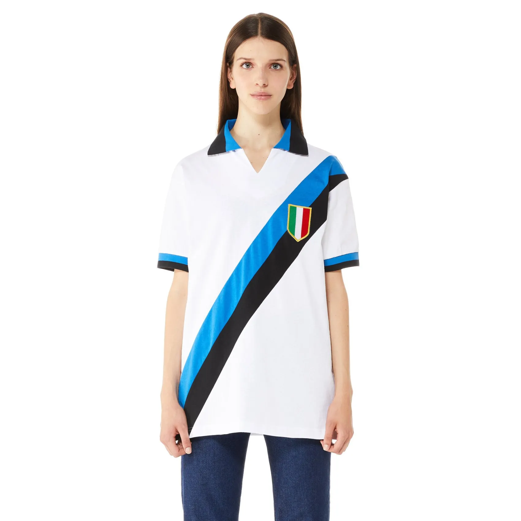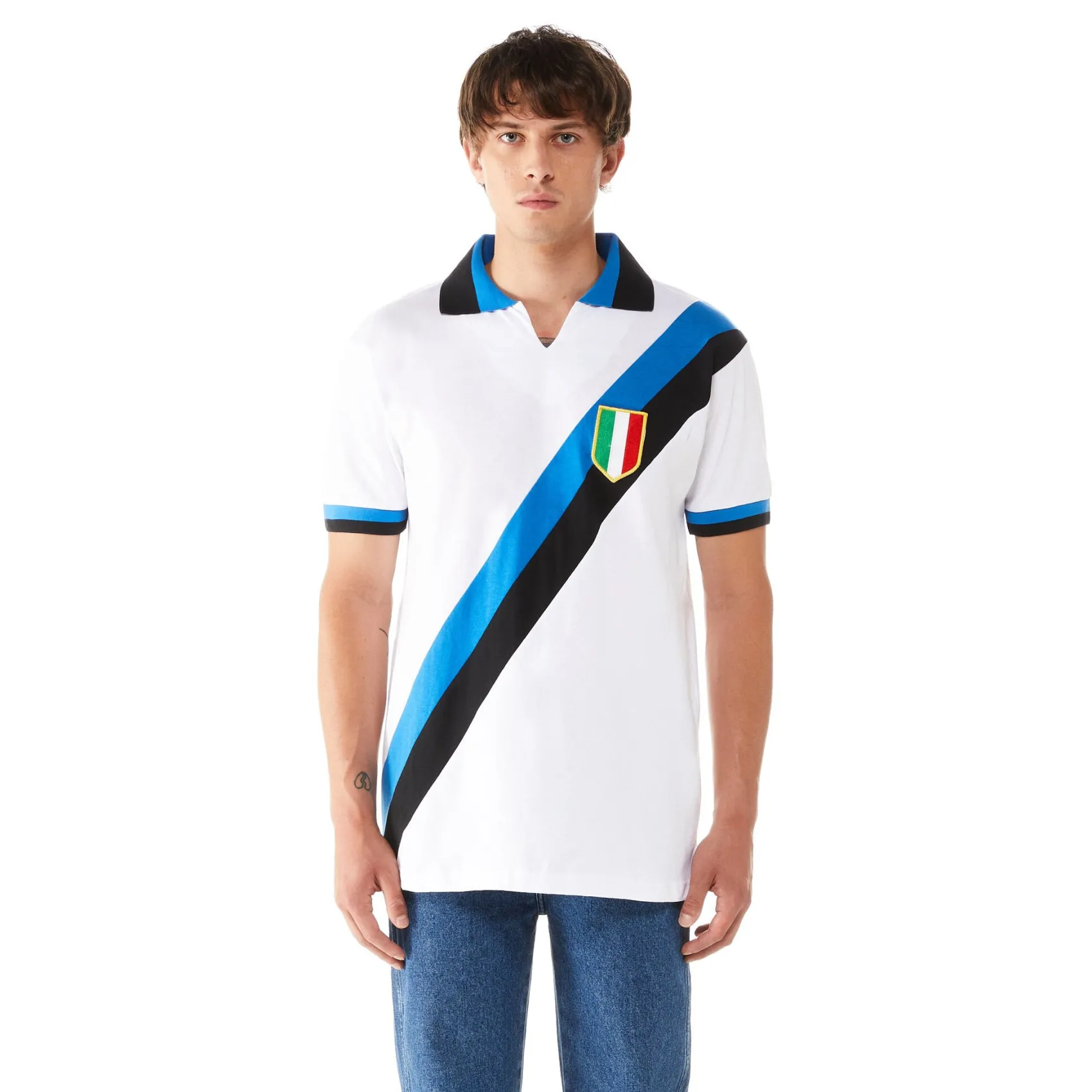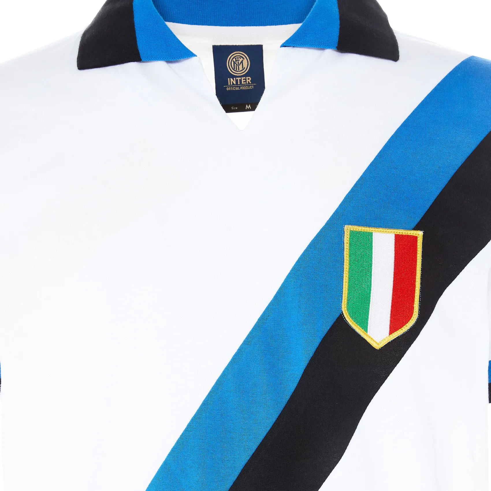 L’iconica maglia gara da trasferta della stagione 1963/64 rappresenta uno dei modelli più eleganti della storia Nerazzurra. Questa maglia fu vestita da campioni del calibro di Burgnich, Facchetti, Picchi, Jair, Suárez e Corso.