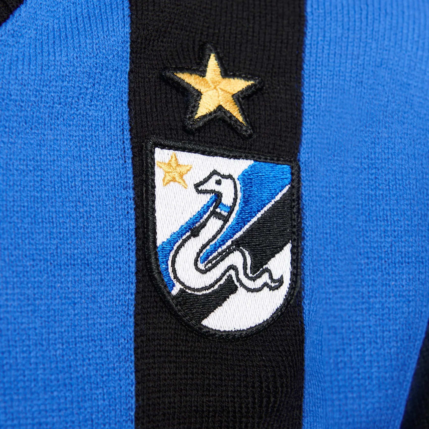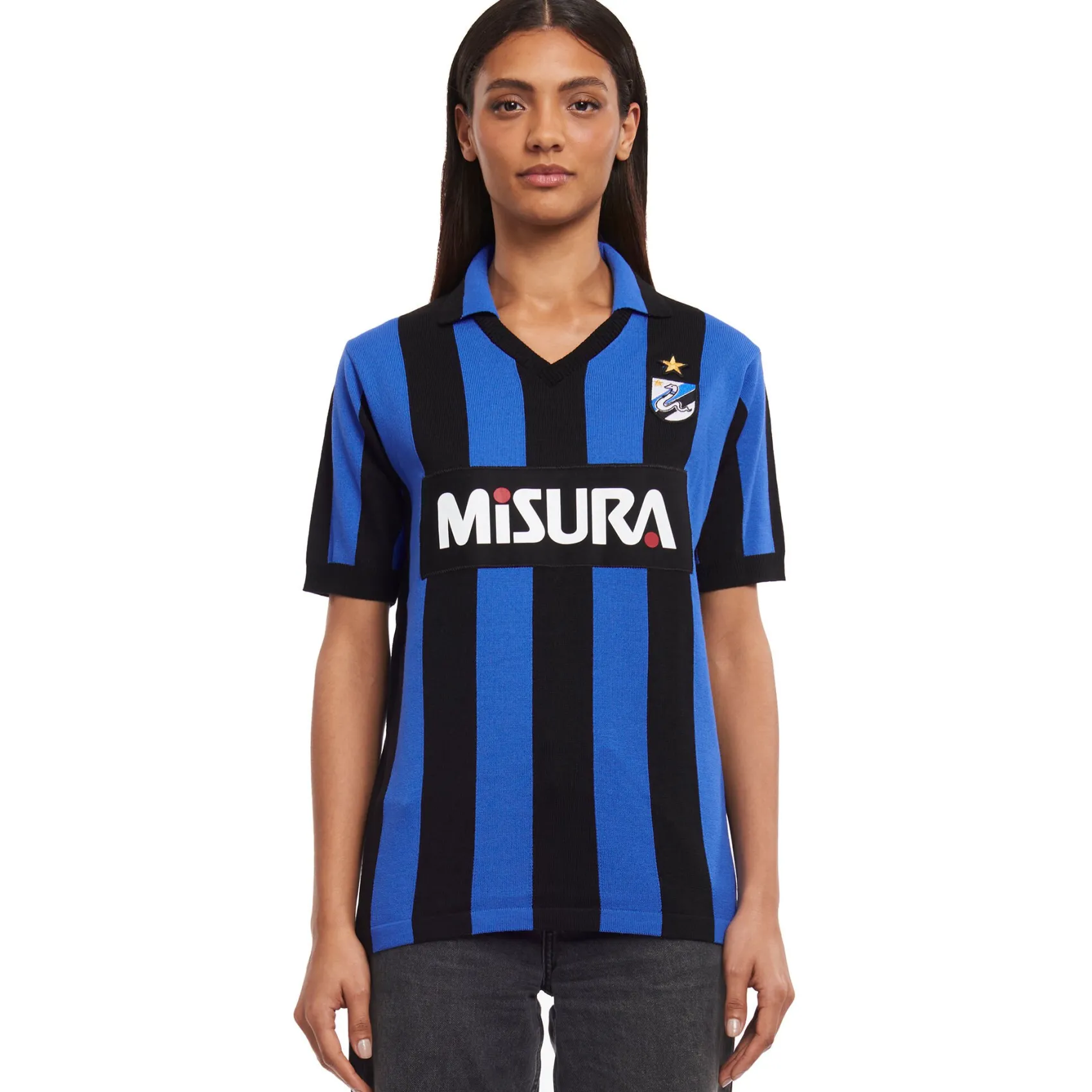 La maglia storica Home del 1986 è realizzata al 100% in acrilico. La maglia è a maniche corte con scollo a V e colletto a polo. Lo stemma retrò con il biscione è ricamato, mentre lo sponsor è stampato e attaccato alla maglia con un supporto di cotone.