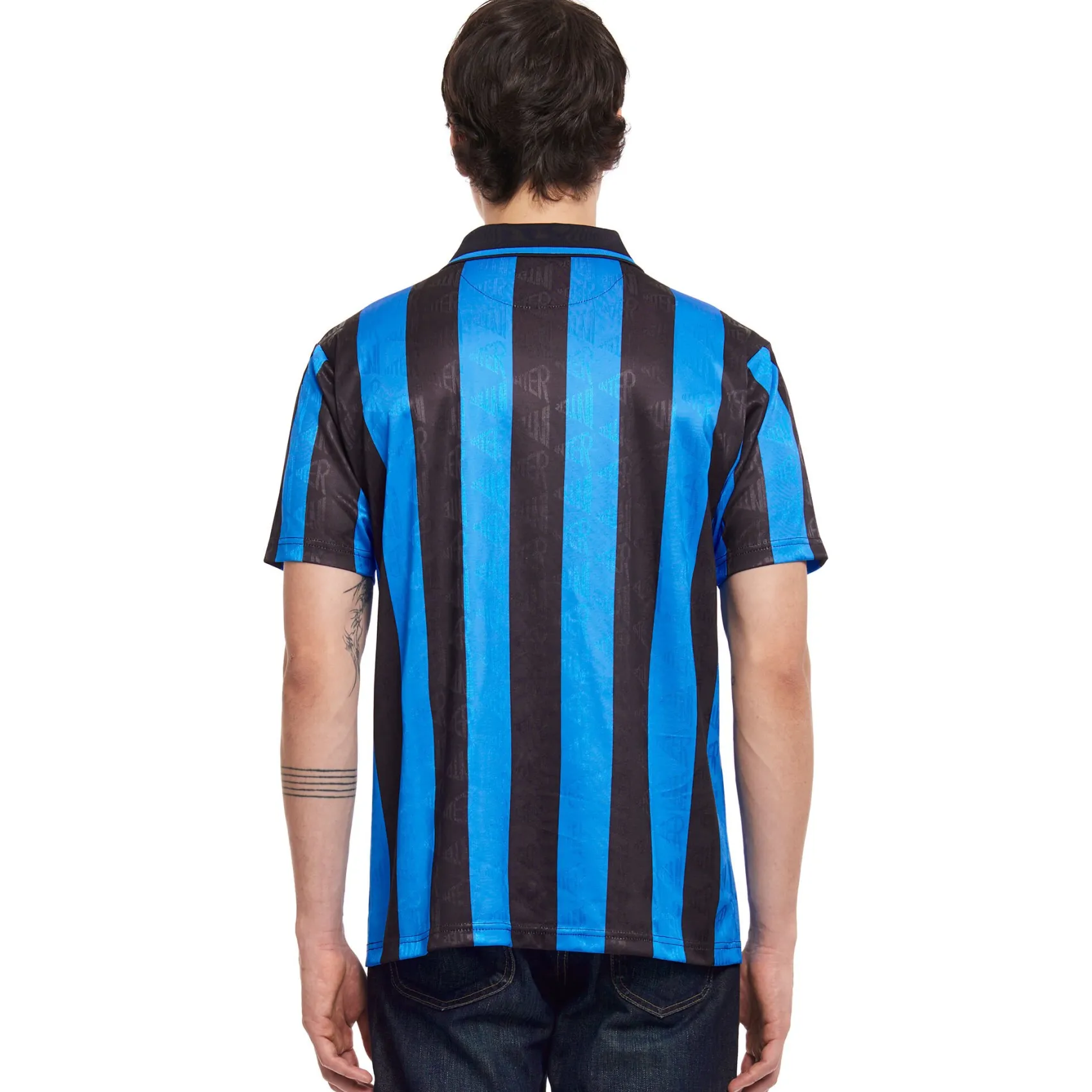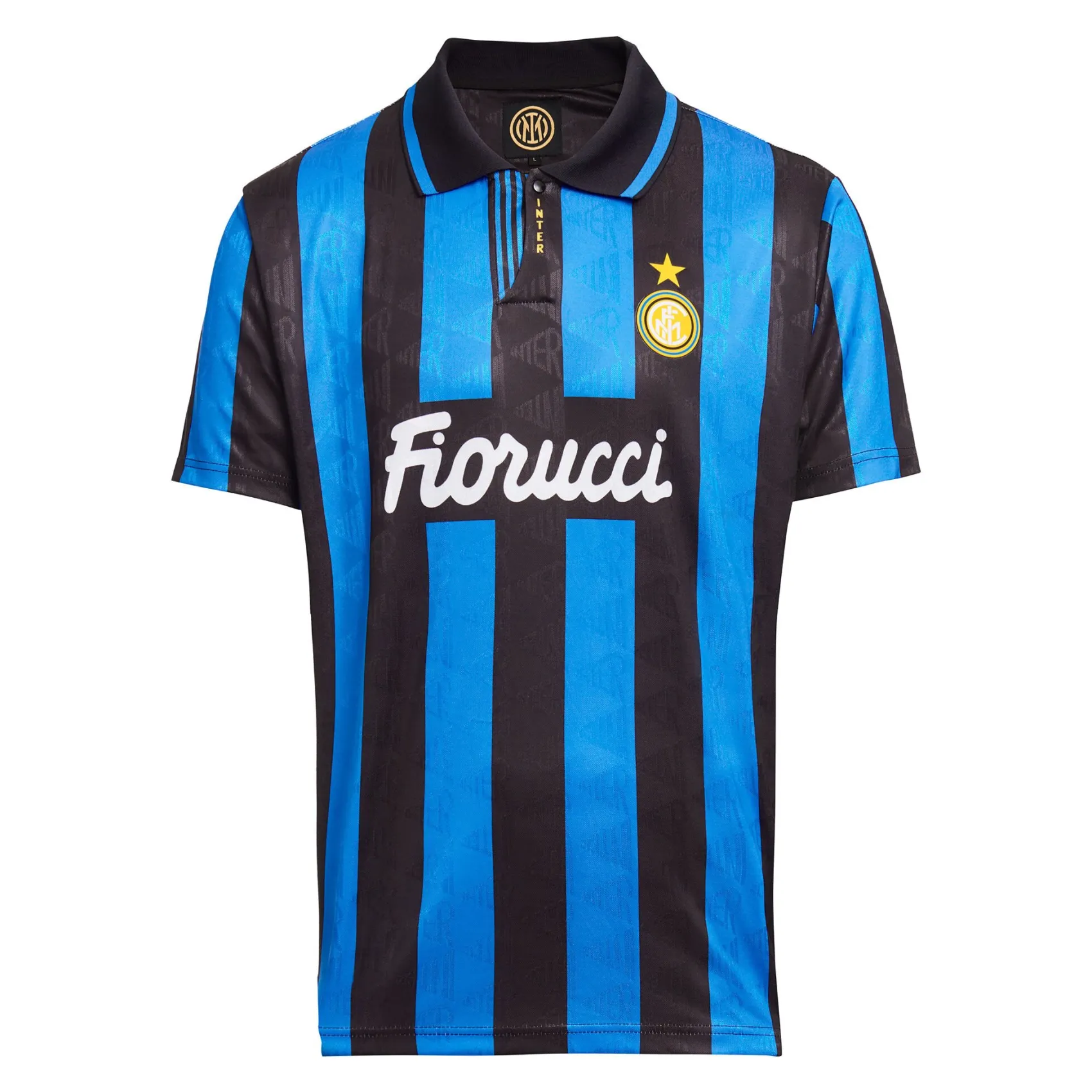 La maglia storica Home 1993/94 è realizzata in 100% poliestere riciclato in uno speciale tessuto jacquard. La maglia è a maniche corte, con colletto a polo e chiusura a bottone. Lo stemma dell’INTER è stampato in floccato, mentre lo sponsor e le strisce sono sublimati.