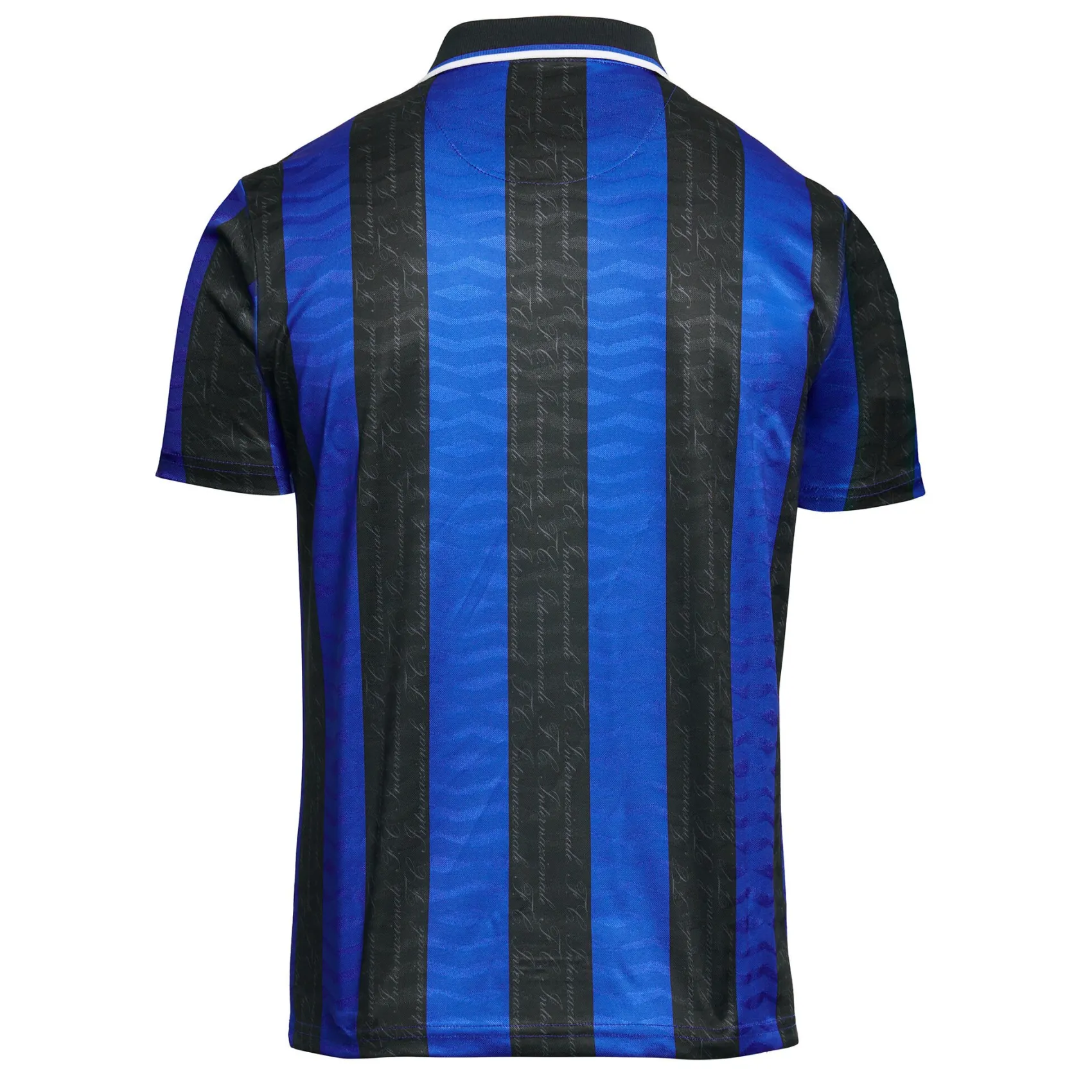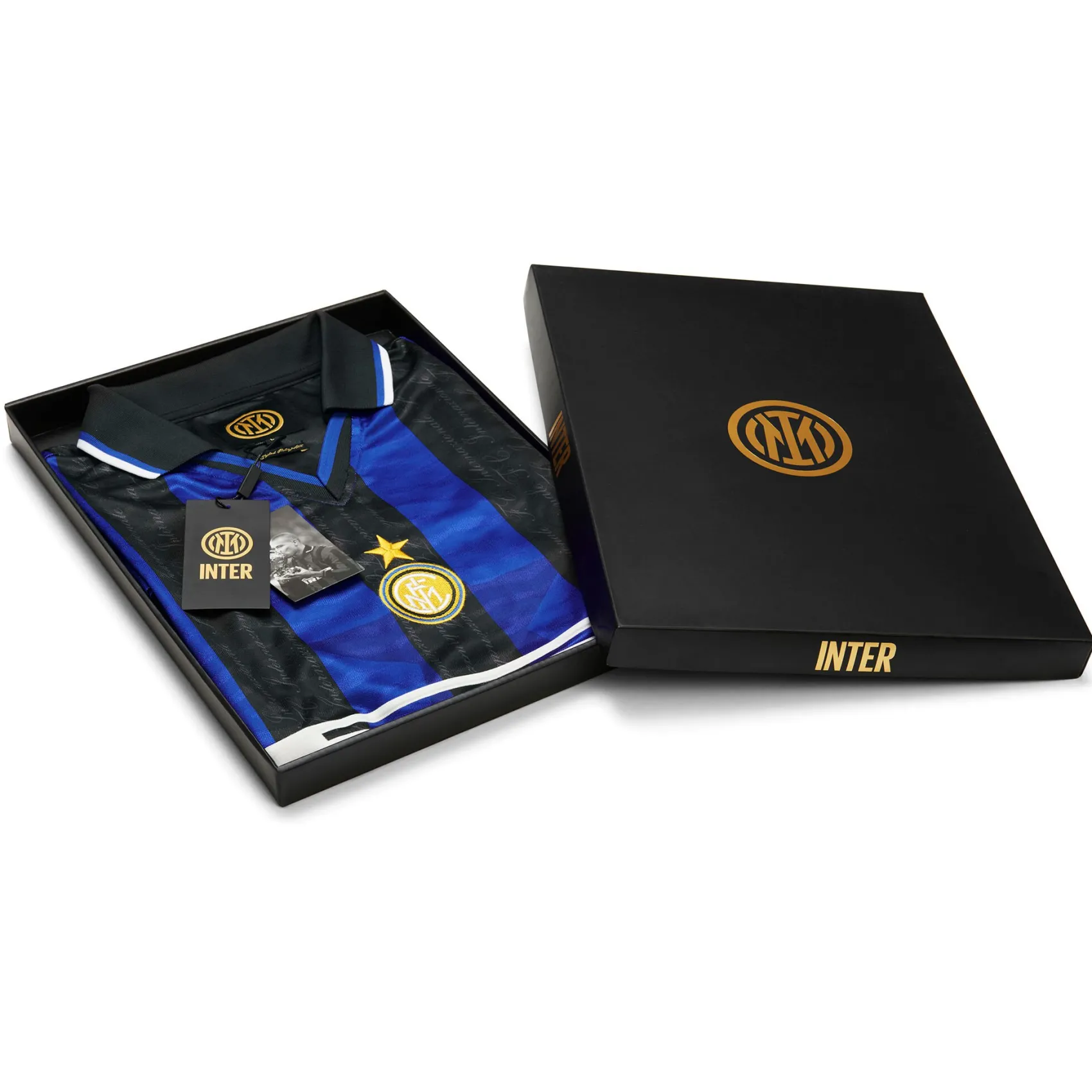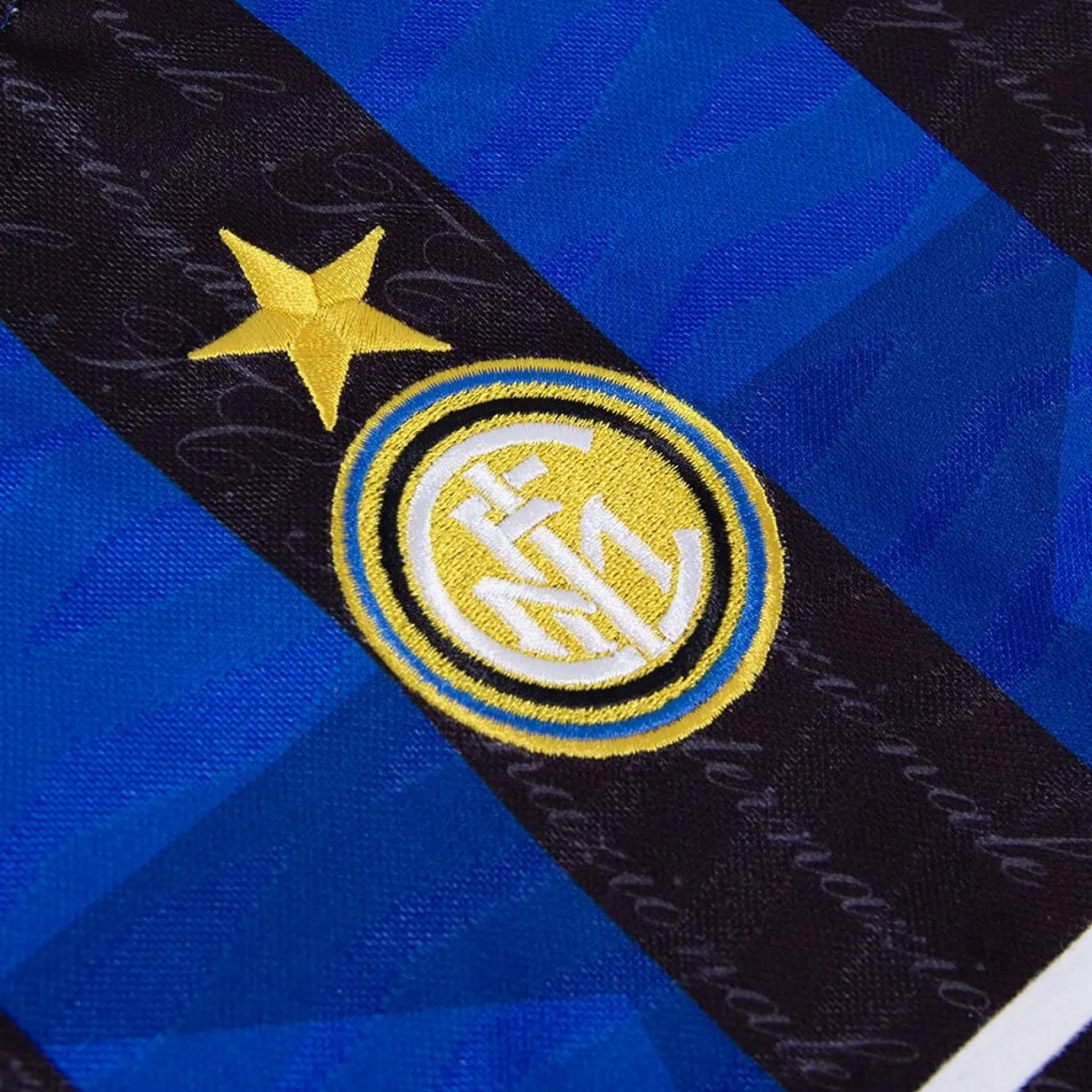 La maglia storica Home 1997/98 è realizzata in 100% poliestere riciclato in uno speciale tessuto jacquard. La maglia è a maniche corte con scollo a V e colletto a polo. Lo stemma dell’INTER è ricamato, la stampa dello sponsor è in rilievo.
