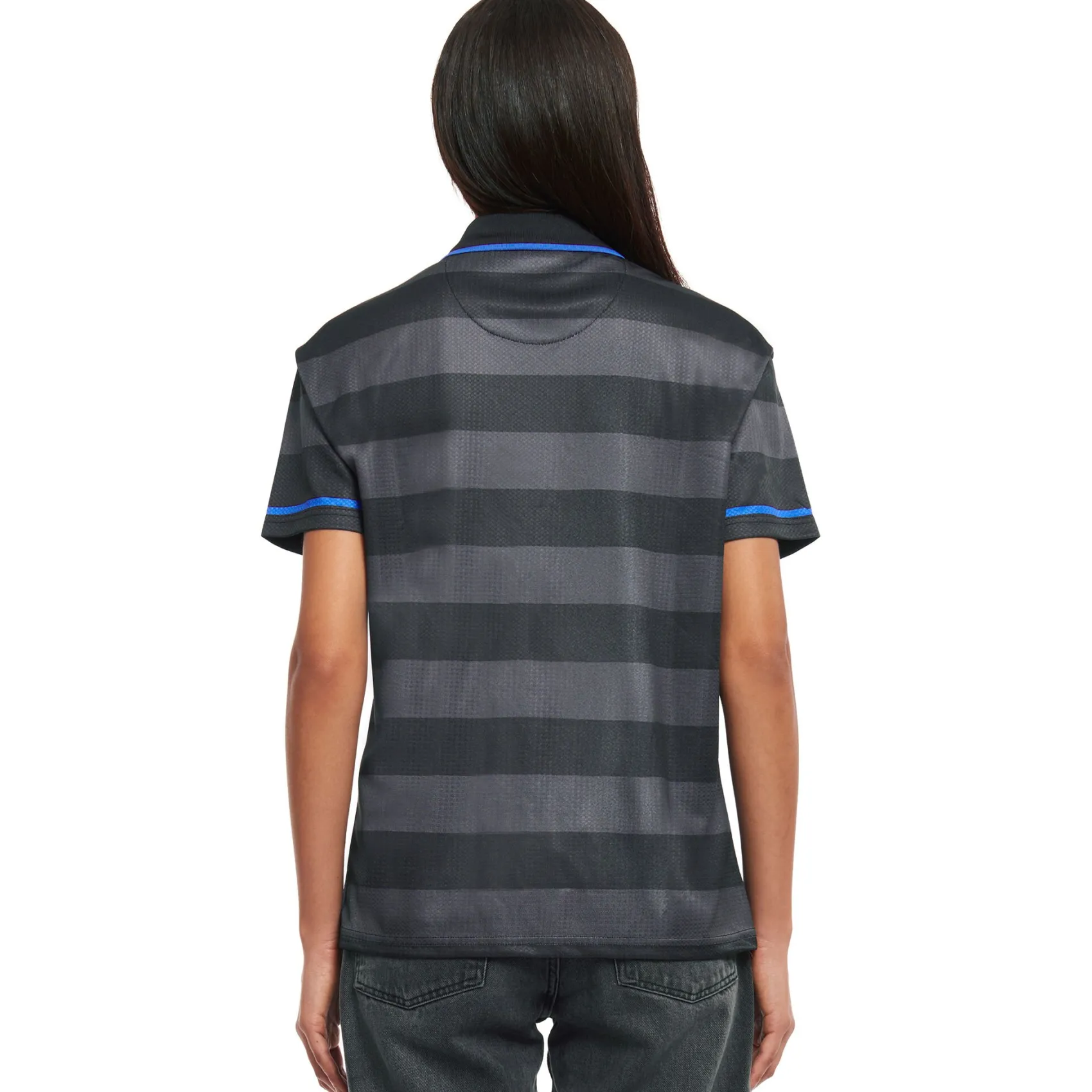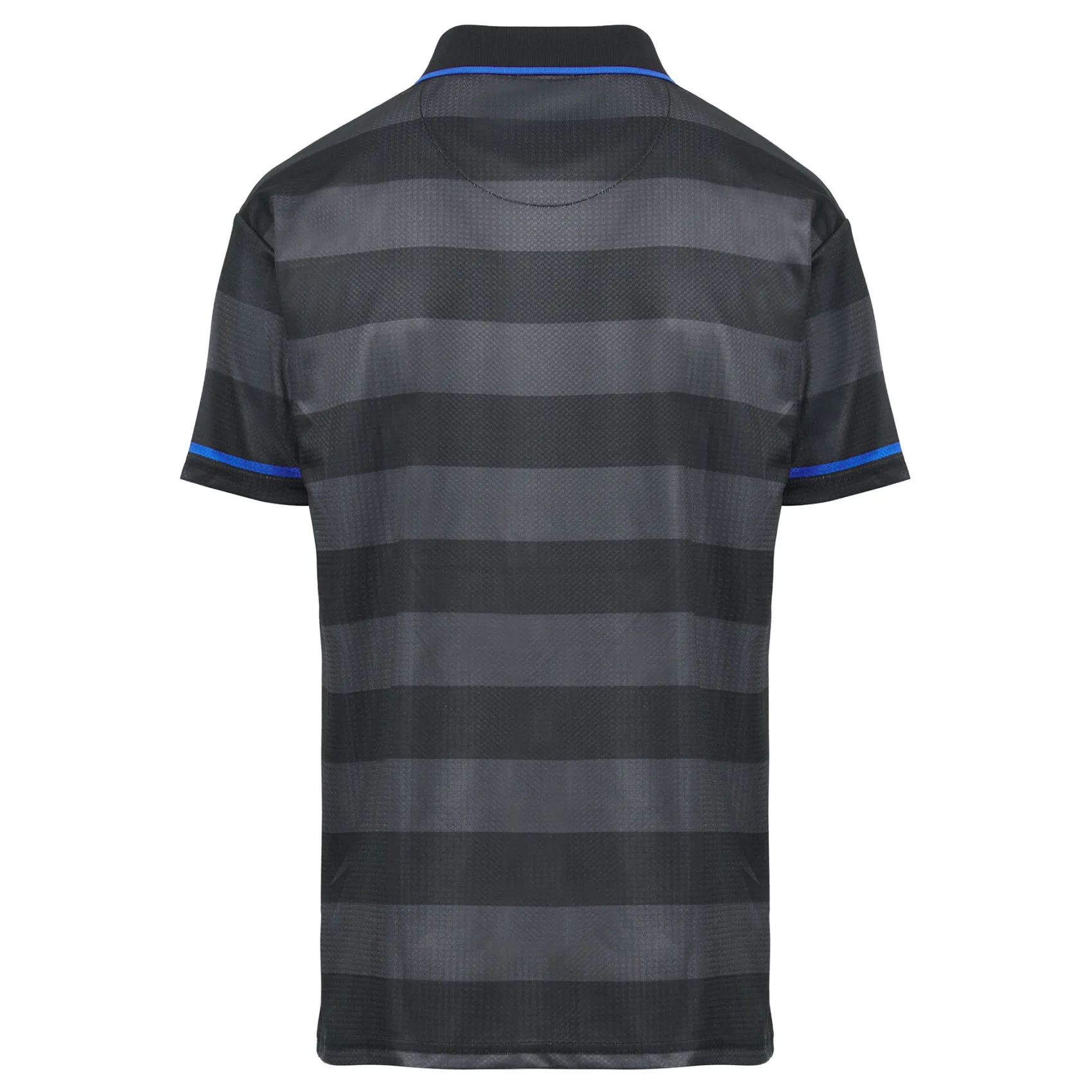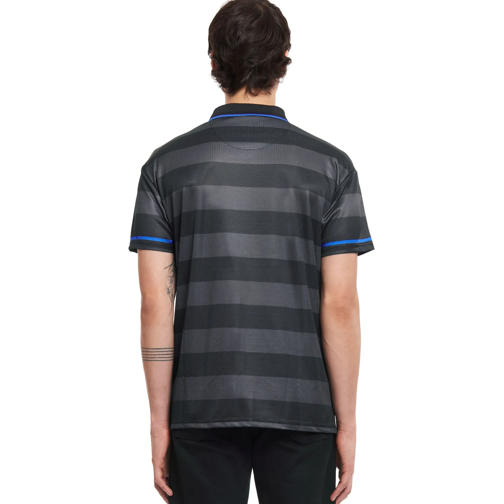 La maglia storica Third 1997/98 è realizzata in 100% poliestere riciclato in uno speciale tessuto jacquard. La maglia è a maniche corte con scollo a V e colletto a polo. Lo stemma dell’INTER è ricamato, la stampa dello sponsor è in rilievo.