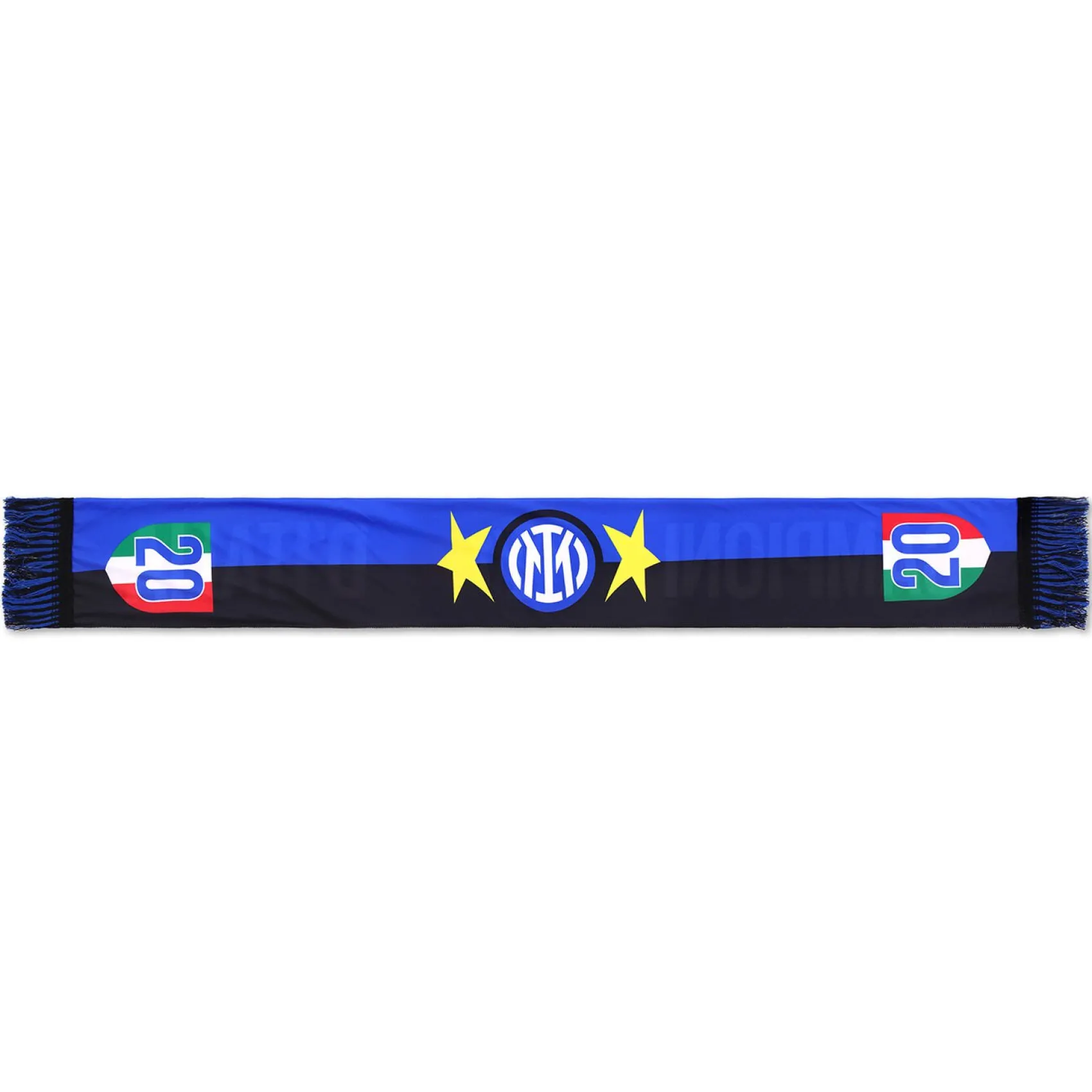 Festeggia la vittoria del ventesimo scudetto e la conquista della seconda stella con la sciarpa celebrativa Campioni d’Italia.