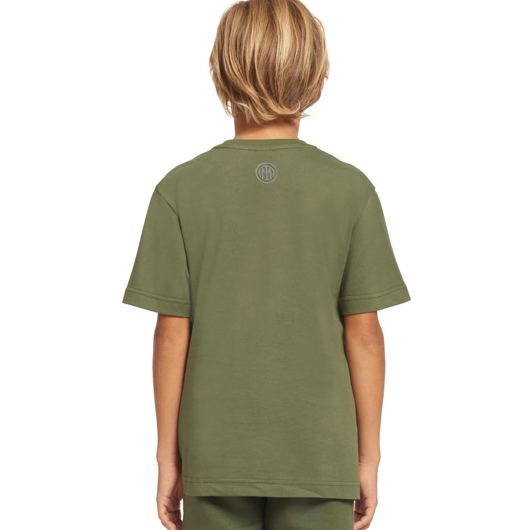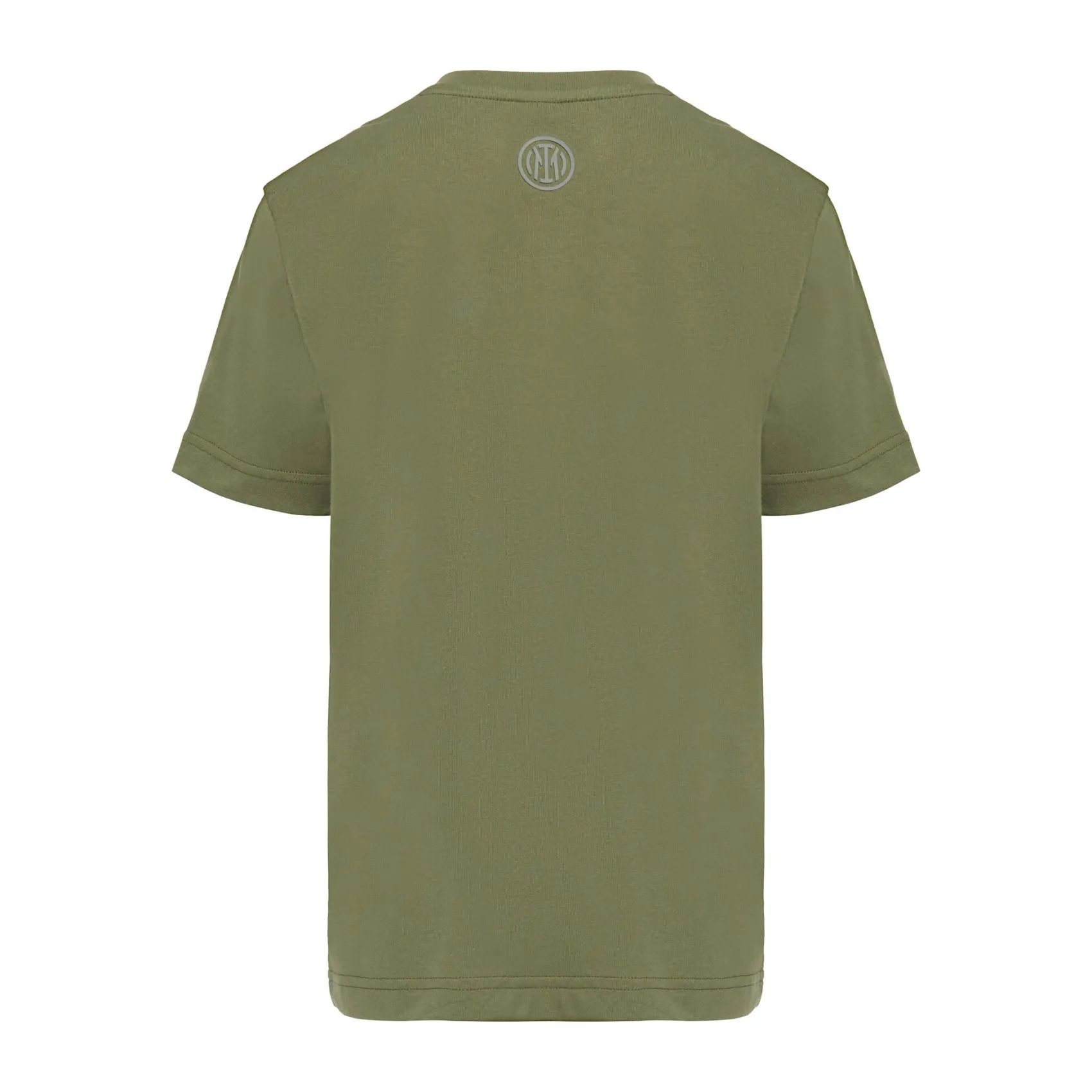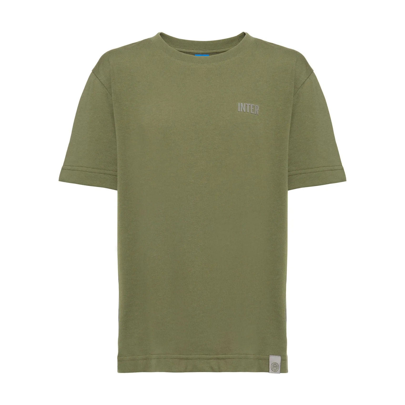 T-shirt INTER manica corta in cotone con collo in costina. Stampa gommata 3D con scritta INTER posizionata sul taschino. Logo INTER gommato 3D sul retro. Vestibilità regolare.