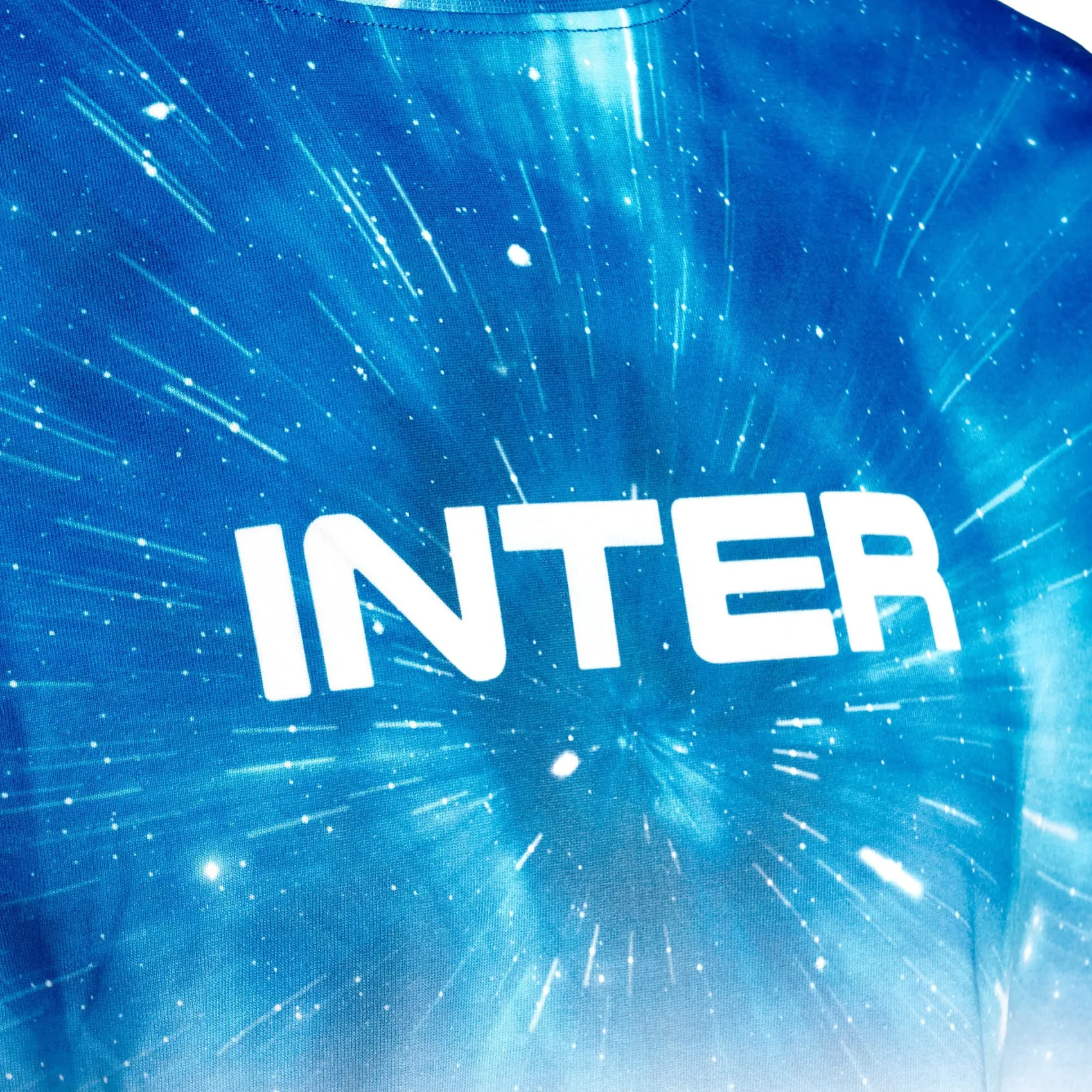 La t-shirt Galaxy fading INTER è caratterizzata da un pattern galattico impreziosito con la scritta INTER al centro.