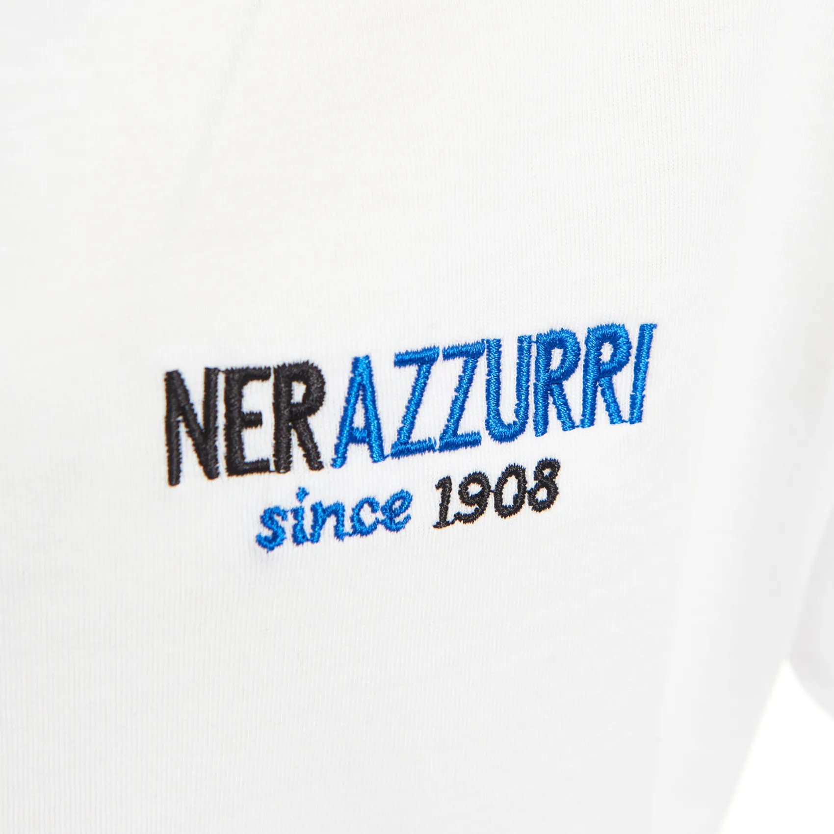 T-shirt INTER bambino manica corta in cotone, personalizzata con ricamo nerazzurri. Vestibilità regolare.