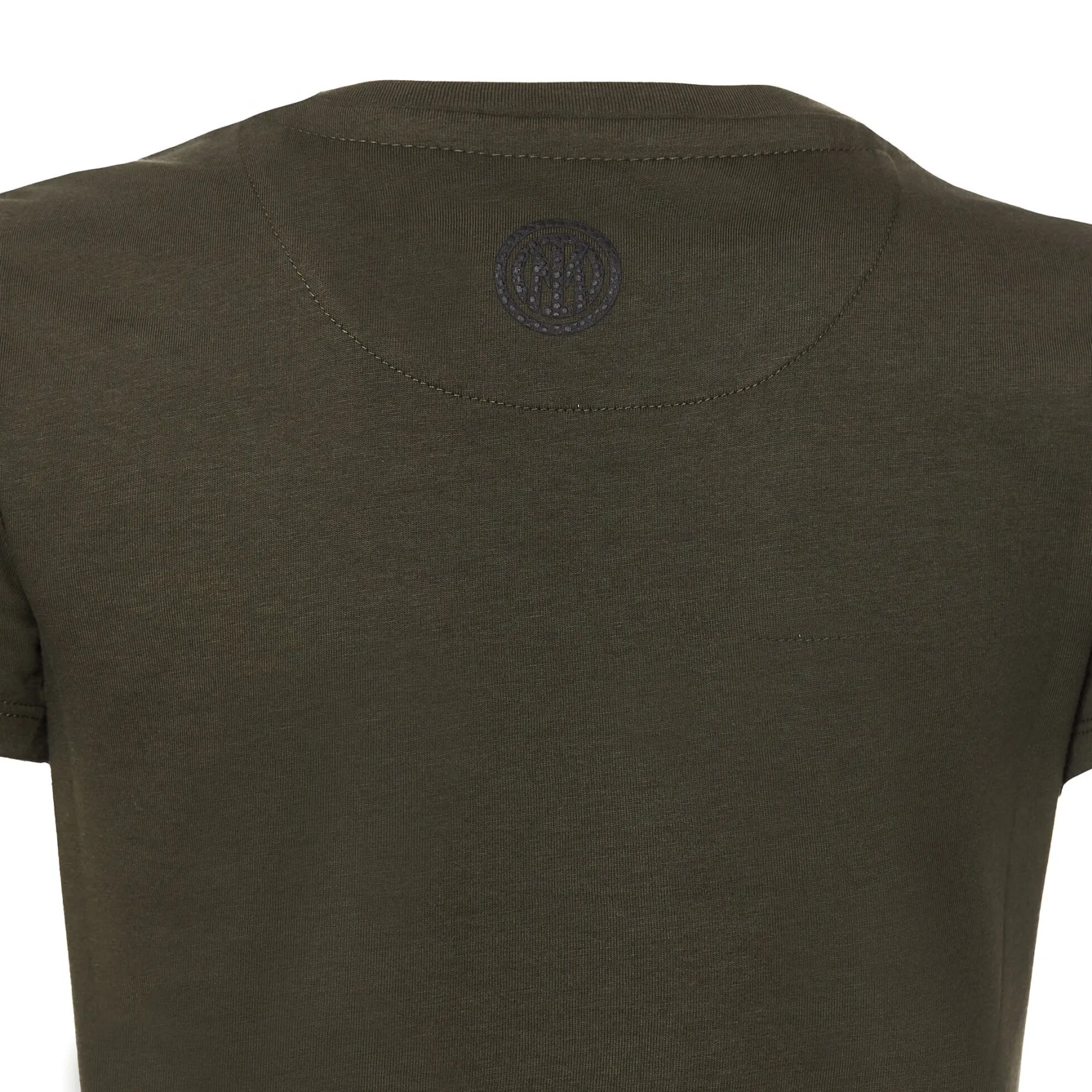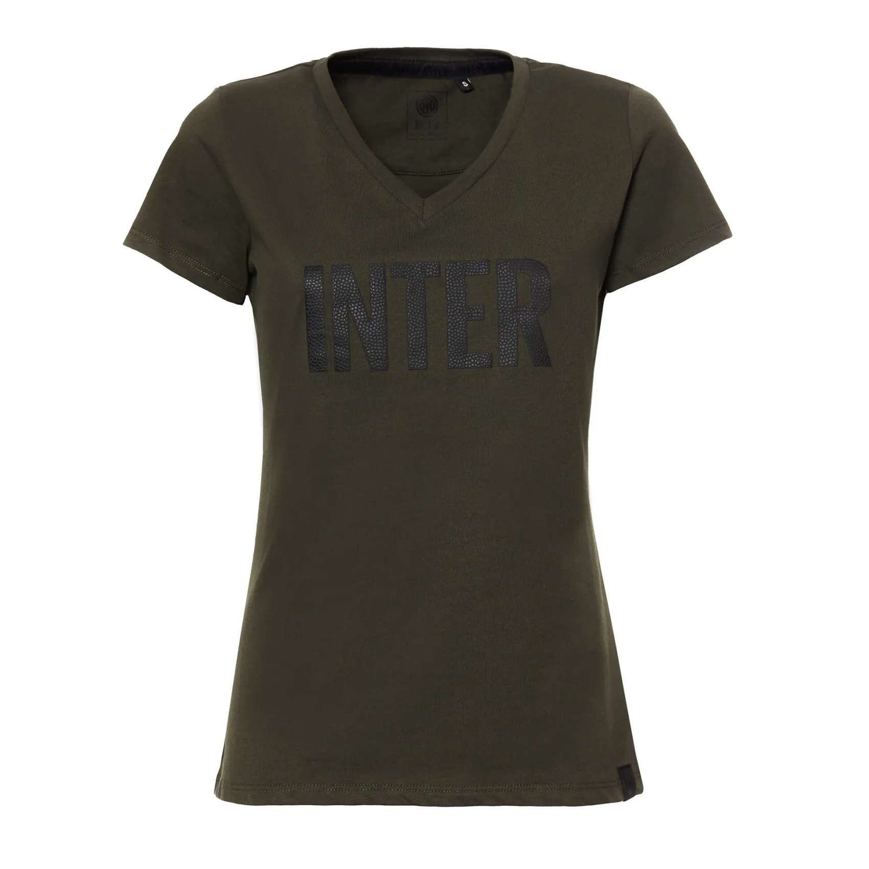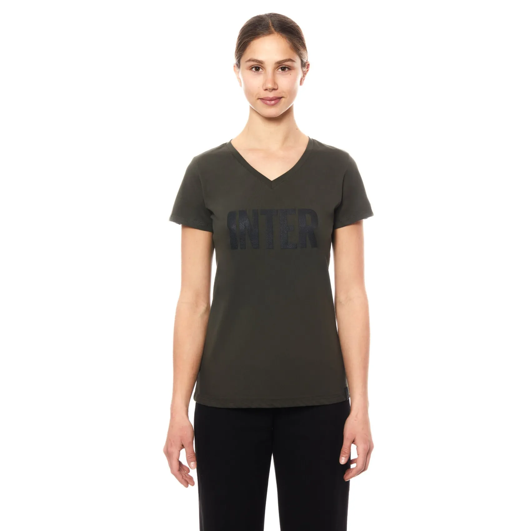 La t-shirt INTER è realizzata in morbido cotone con lo scollo a V bordato in costina. La stampa gommata in posizione centrale ha una texture che richiama il simbolo della tua squadra del cuore. Parasudore con scritta INTER. Vestibilità slim.