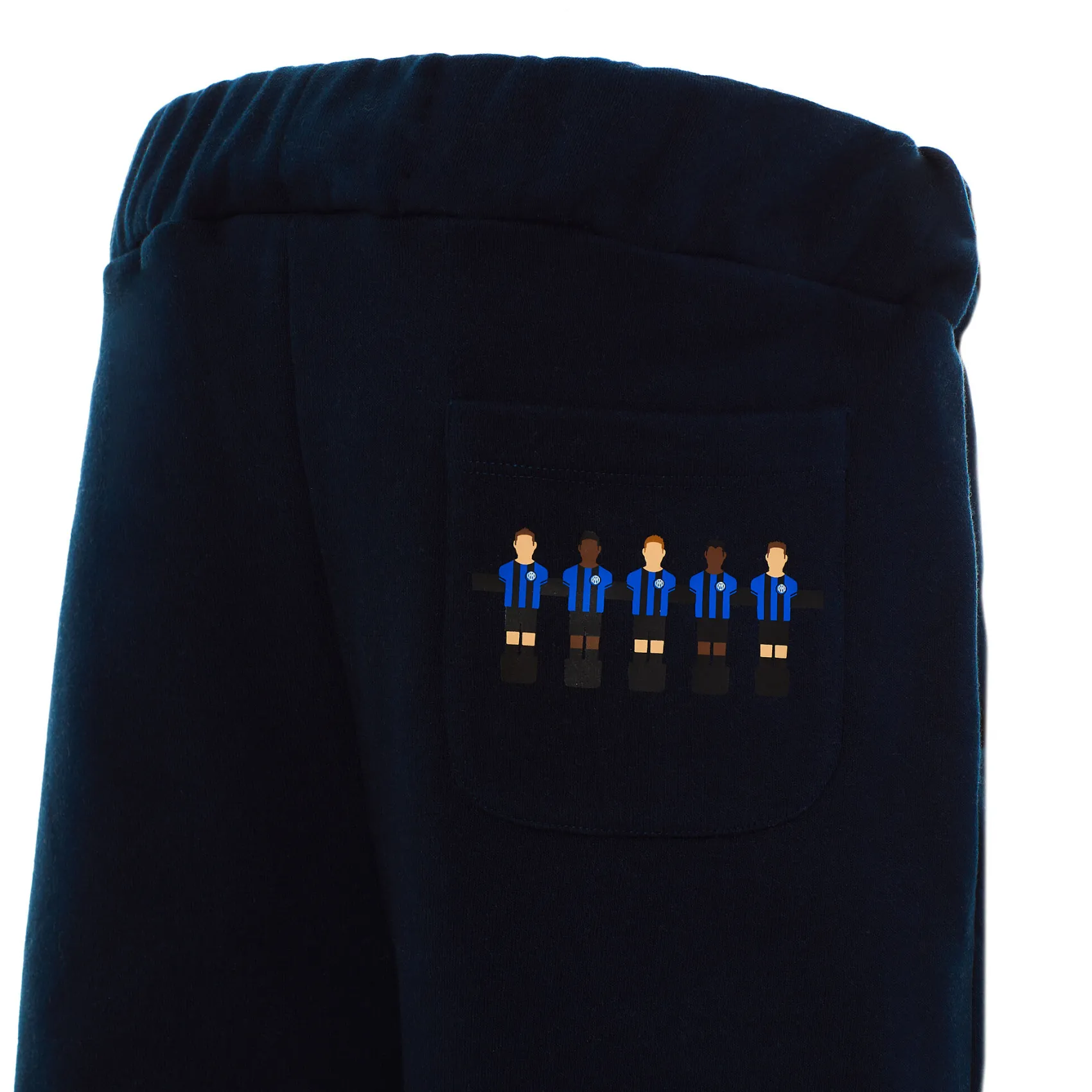 Le partite non si fermano al campo da gioco, ma proseguono nella vita di tutti i giorni! Con i pantaloncini INTER calcio balilla vivrai le emozioni della tua squadra del cuore durante le sue sfide quotidiane! In felpa di cotone, sono un capo comodo e pratico grazie alle 2 tasche inseratate davanti e quella applicata sul retro. Vestibilità regolare.